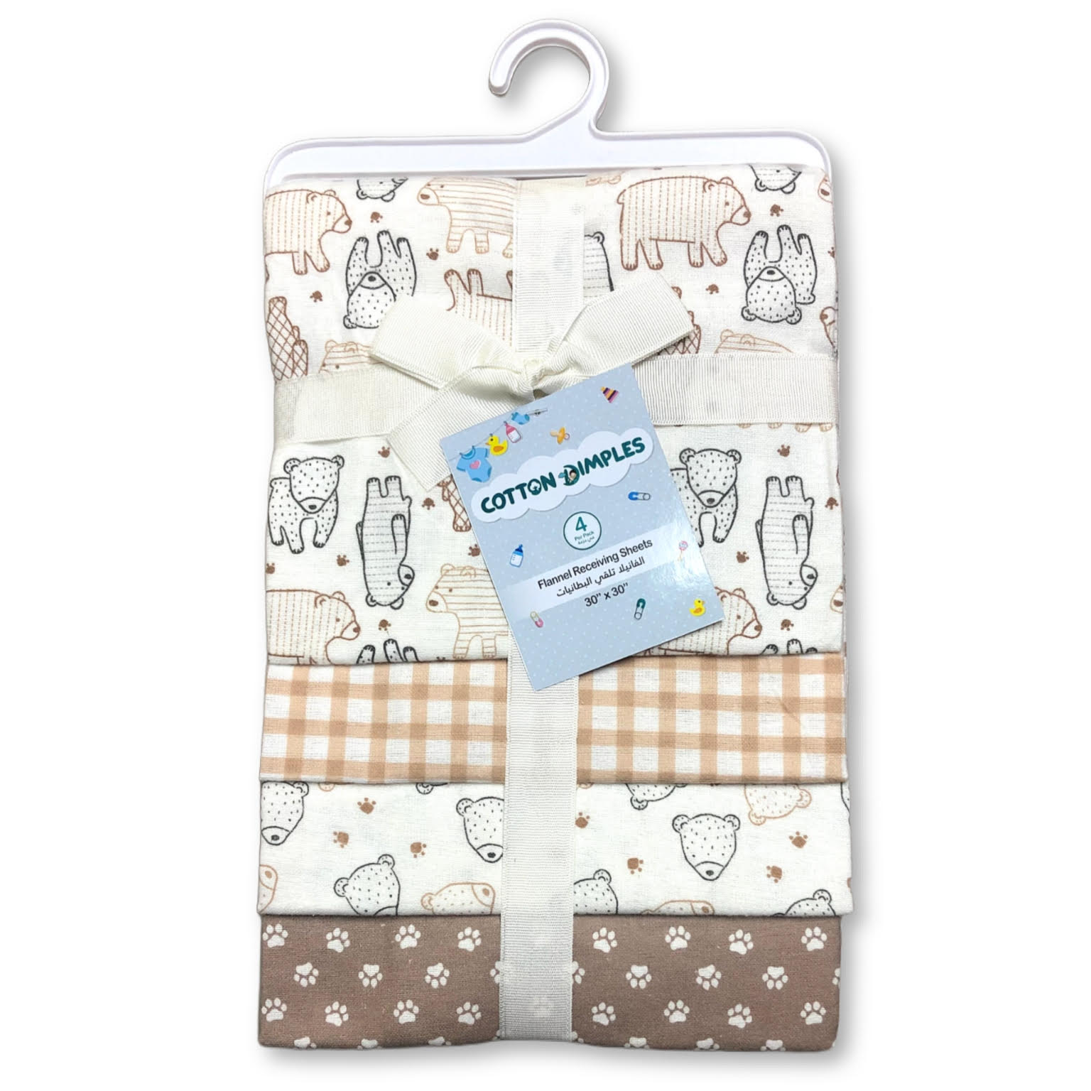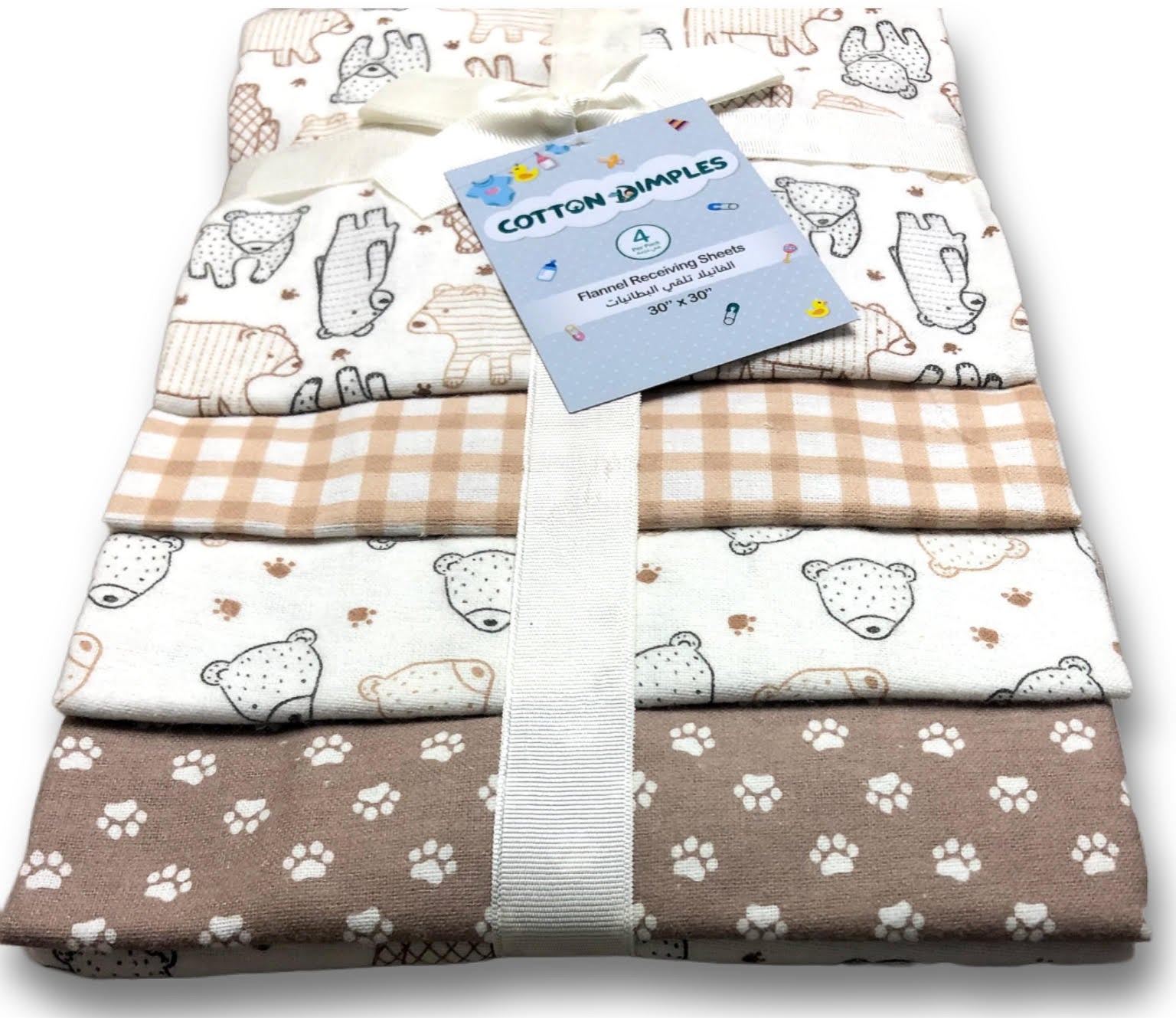 Cotton Dimples cotton flannel receiving sheets are versatile baby blankets with a variety of uses. Great as a blanket, nursing cover, burp cloth, car seat cover, tummy time, changing pad cover and more. Our receiving blankets are made with 100% cotton flannel for the softest touch on your baby's skin.