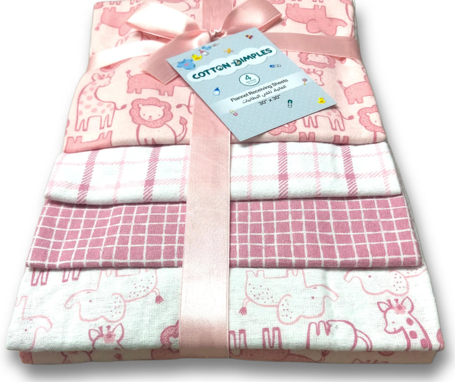 Cotton Dimples cotton flannel receiving sheets are versatile baby blankets with a variety of uses. Great as a blanket, nursing cover, burp cloth, car seat cover, tummy time, changing pad cover and more. Our receiving blankets are made with 100% cotton flannel for the softest touch on your baby's skin.