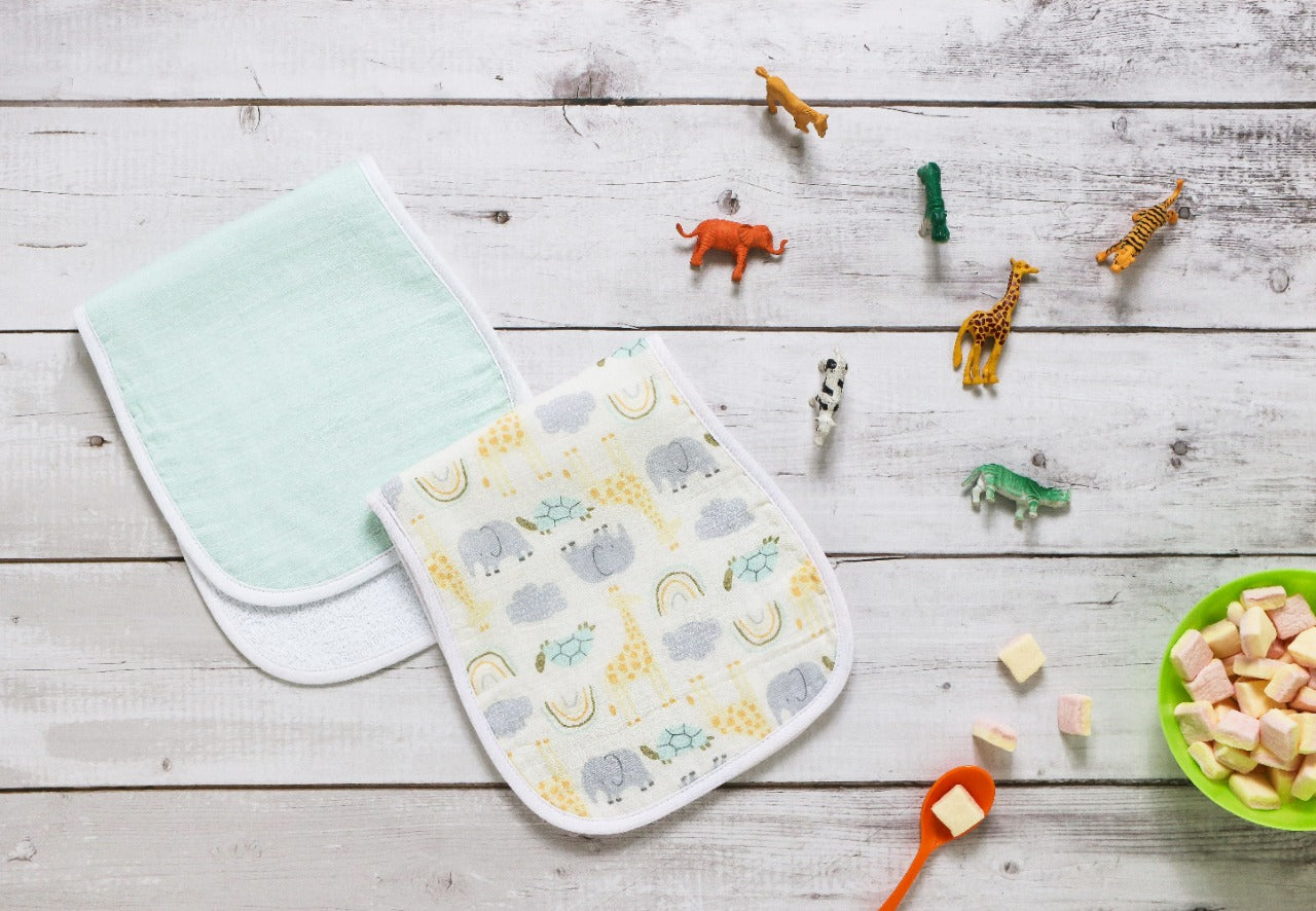 For the first time ever in Pakistan, we are launching our premium burp cloth set of two for mommies who are tired of using makeshift, unhygienic and almost unmanageable cloths to wipe food or burp their babies to sleep.