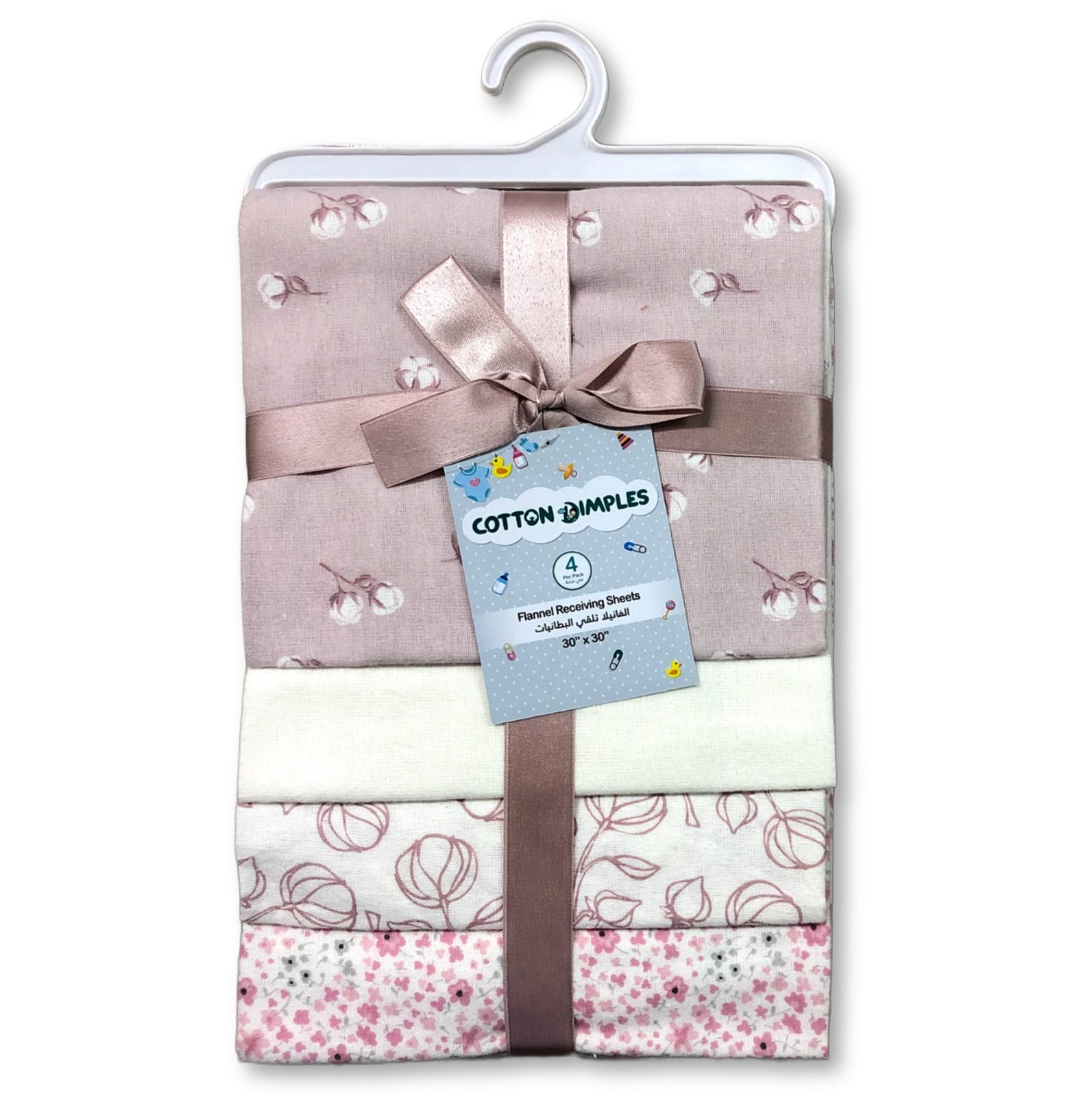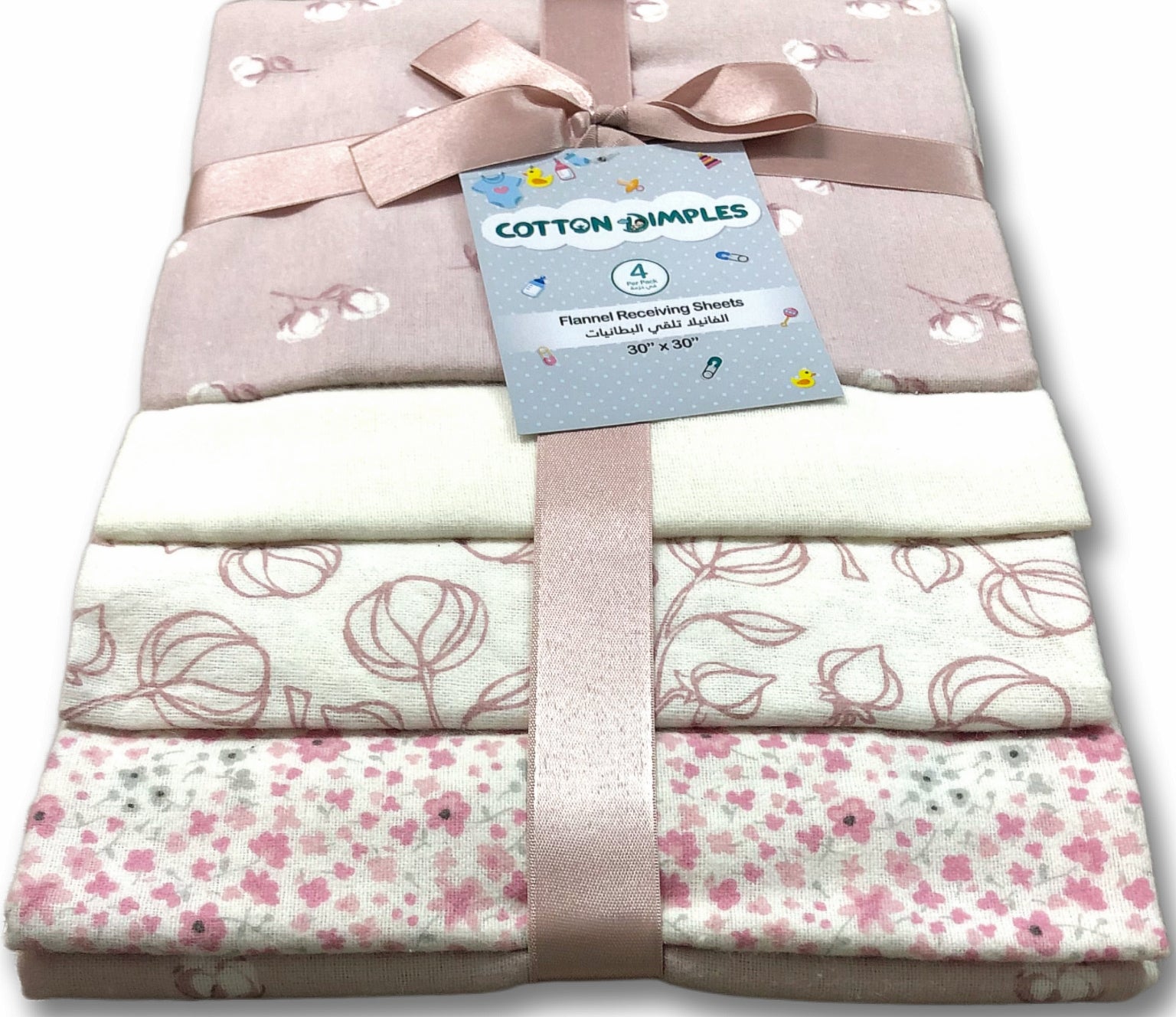 Cotton Dimples cotton flannel receiving sheets are versatile baby blankets with a variety of uses. Great as a blanket, nursing cover, burp cloth, car seat cover, tummy time, changing pad cover and more. Our receiving blankets are made with 100% cotton flannel for the softest touch on your baby's skin.