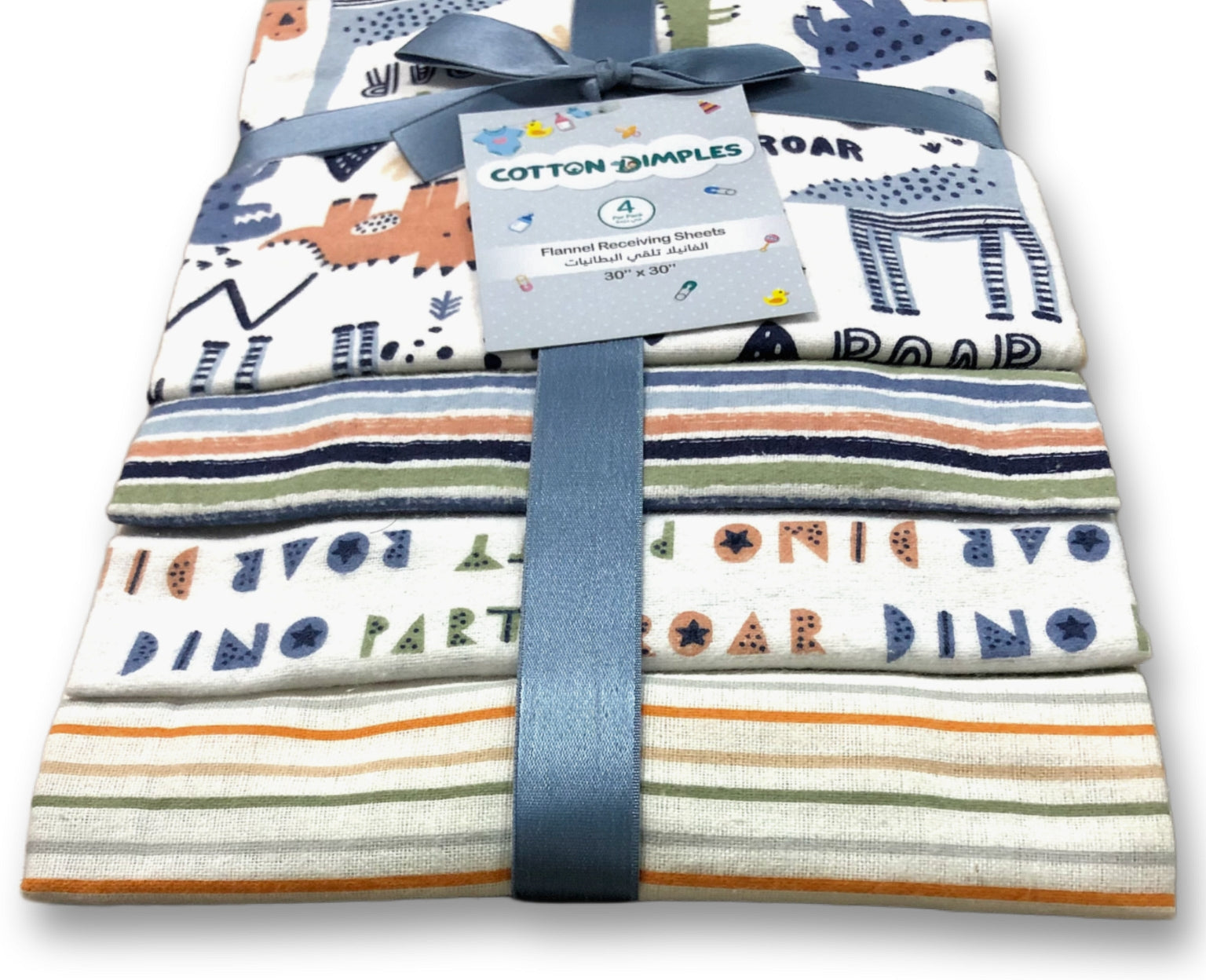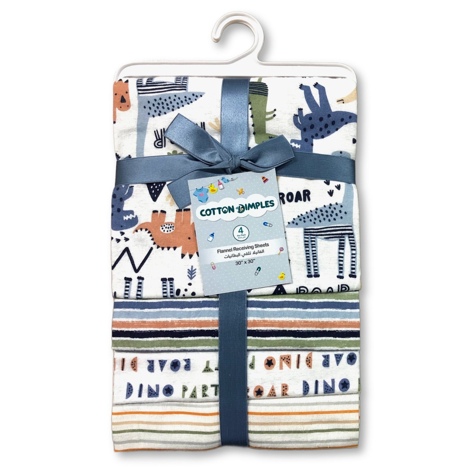 Cotton Dimples cotton flannel receiving sheets are versatile baby blankets with a variety of uses. Great as a blanket, nursing cover, burp cloth, car seat cover, tummy time, changing pad cover and more. Our receiving blankets are made with 100% cotton flannel for the softest touch on your baby's skin.