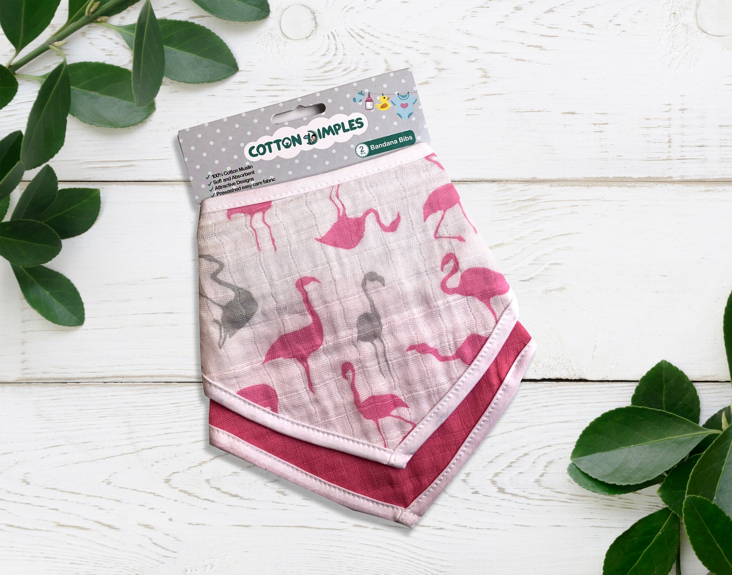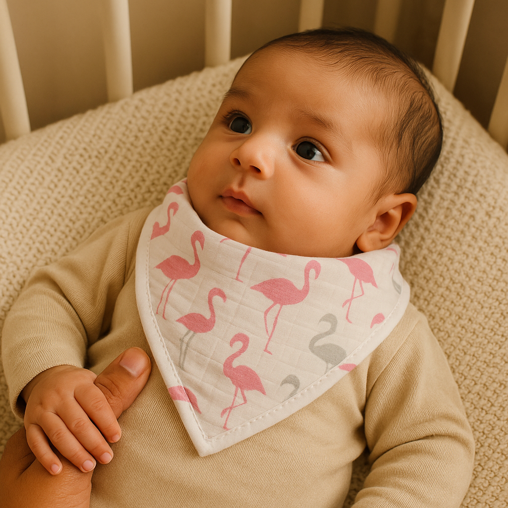 Cotton muslin bandana bibs in attractive designs. These are very soft and absorbent. Softness retains even after multiple wash. Since its in the style of a bandana, its a bib and an attractive piece of clothing. Available in 7 different designs.