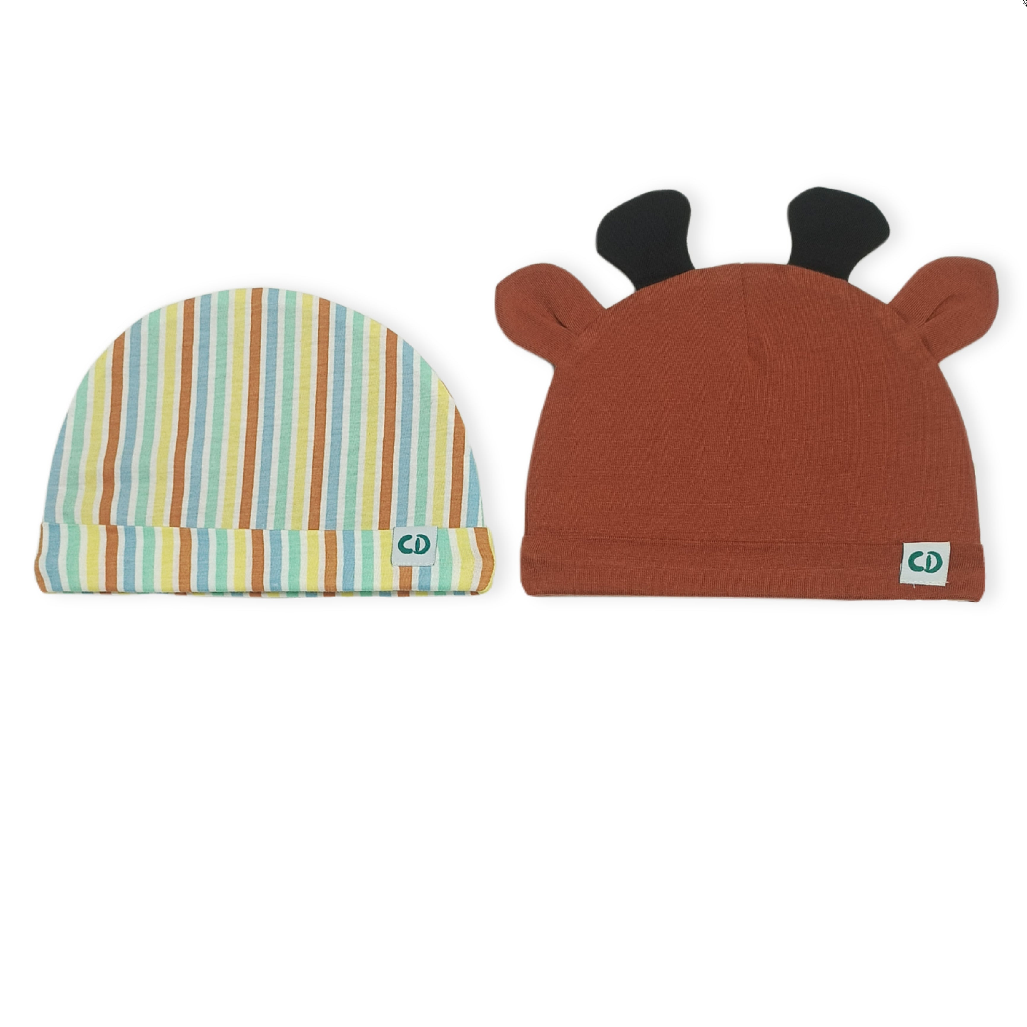 Set of Two Jersey Caps for babies especially made to suit the muslin swaddle blankets and muslin wraps we have in our store.