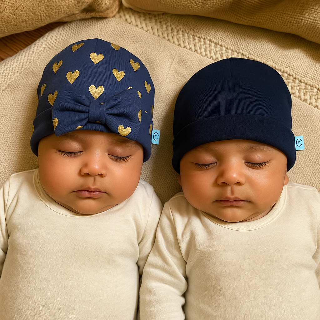 Set of Two Jersey Caps for babies especially made to suit the muslin swaddle blankets and muslin wraps we have in our store.