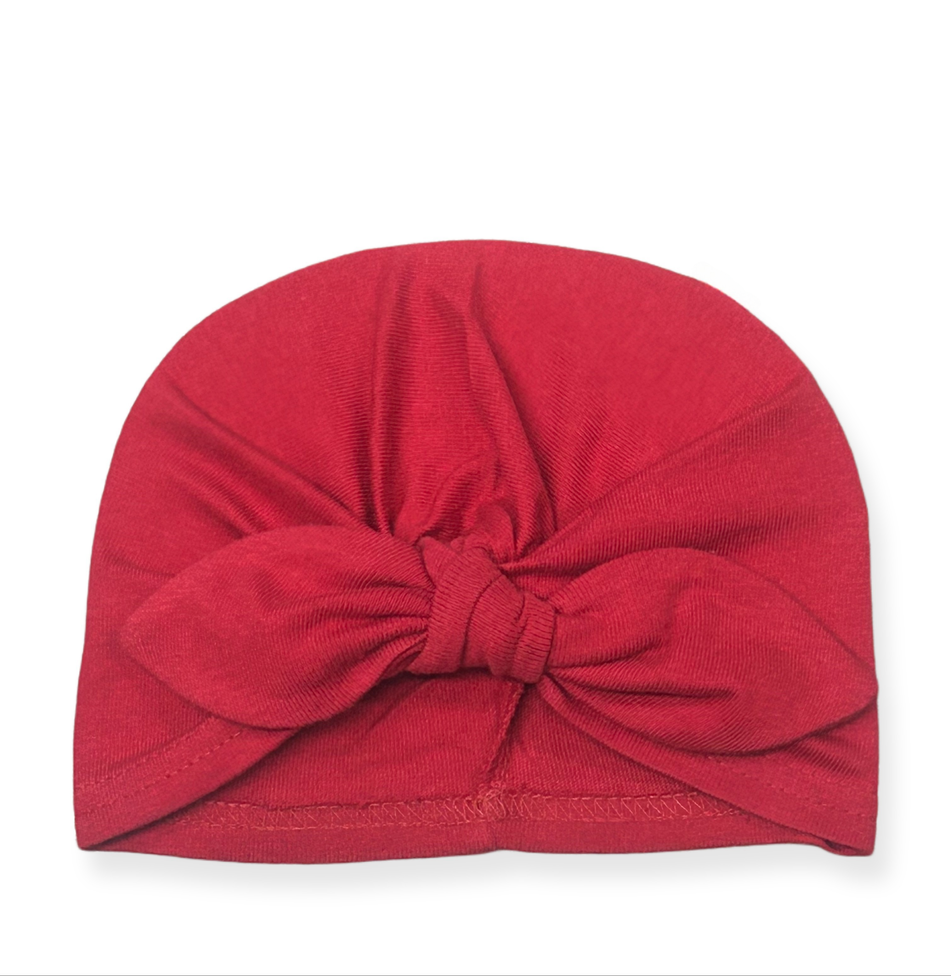 Wrap your little one in style with our beautifully embellished turban cap, designed specifically for baby girls. This charming headpiece features a soft, stretchy fabric that gently hugs your baby's head for a comfortable fit. The highlight of this cap is the lovely knot detail at the front, adding a touch of whimsy and elegance.