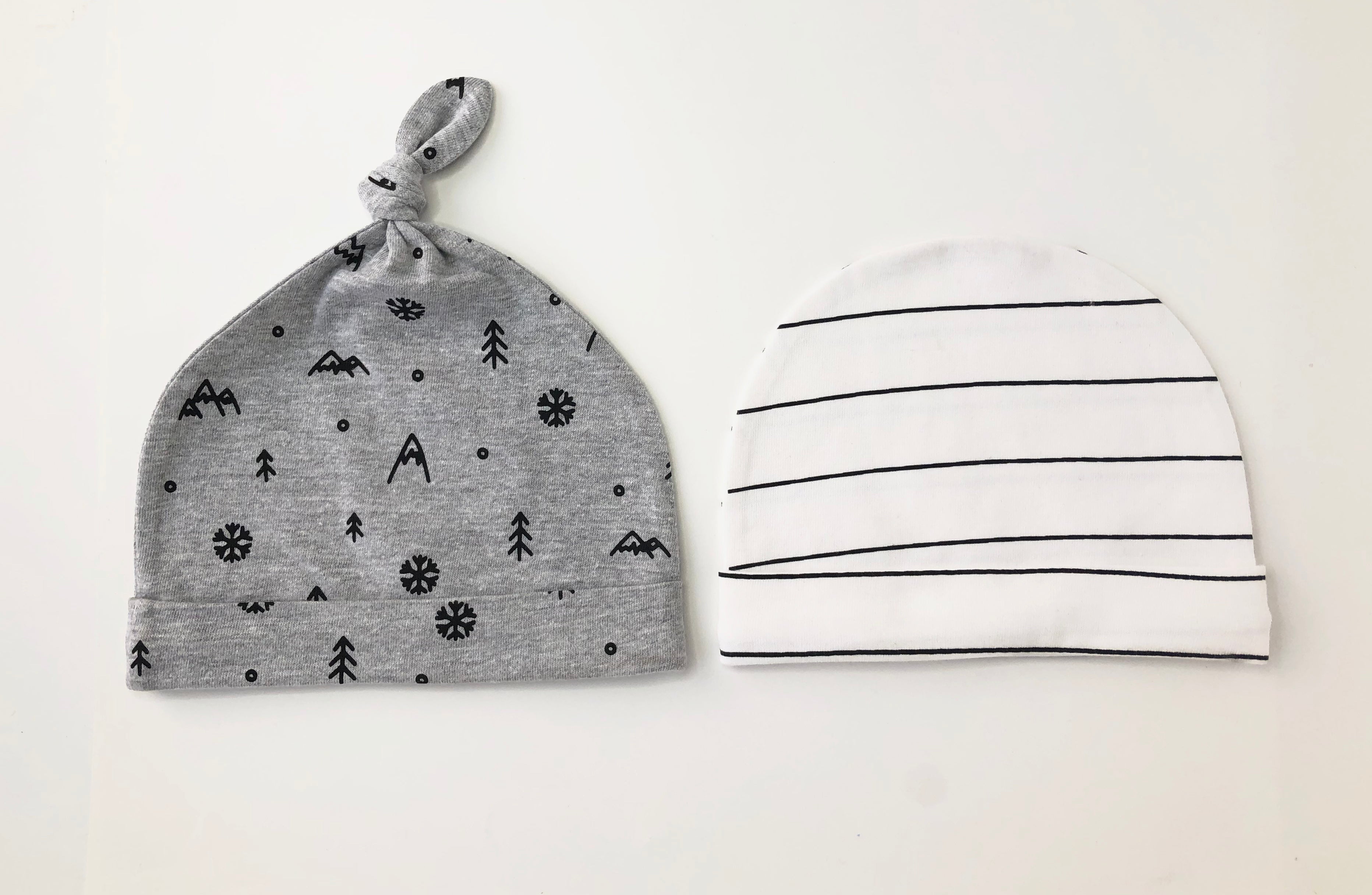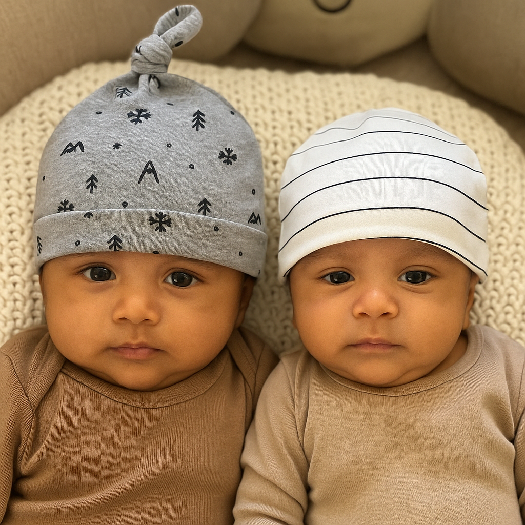 Set of Two Jersey Caps for babies especially made to suit the muslin swaddle blankets and muslin wraps we have in our store.
