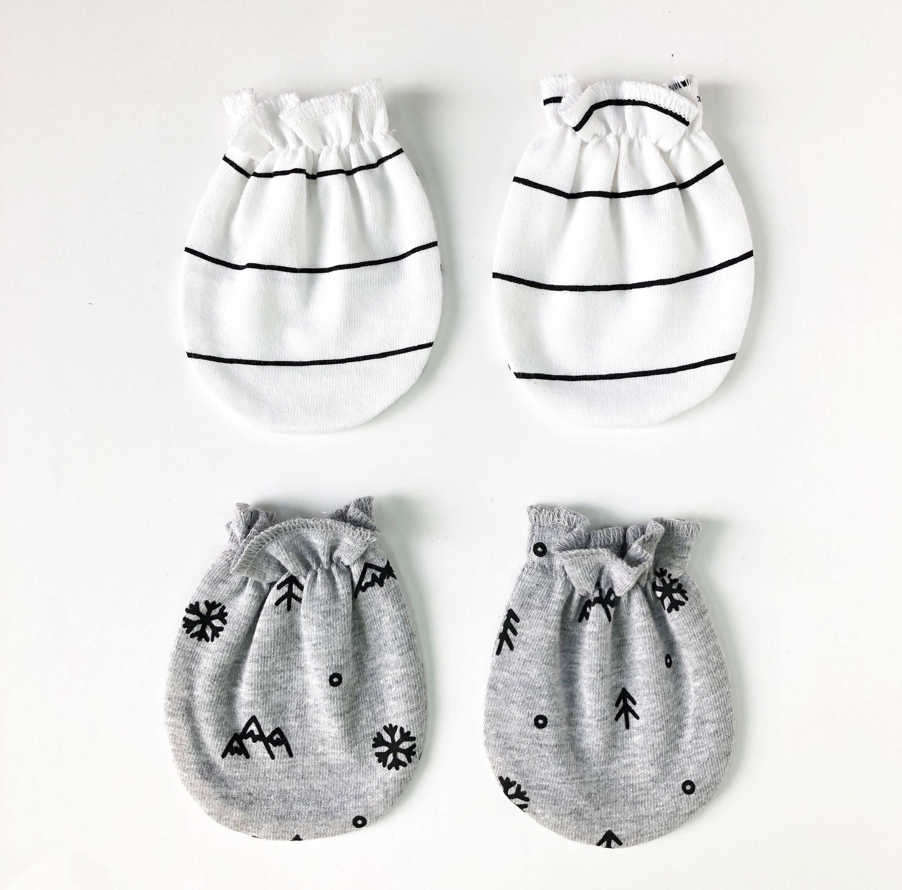 There are two sets of these ultra comfortable mittens in this pack that are designed for your baby's hands. Please do check the size chart attached