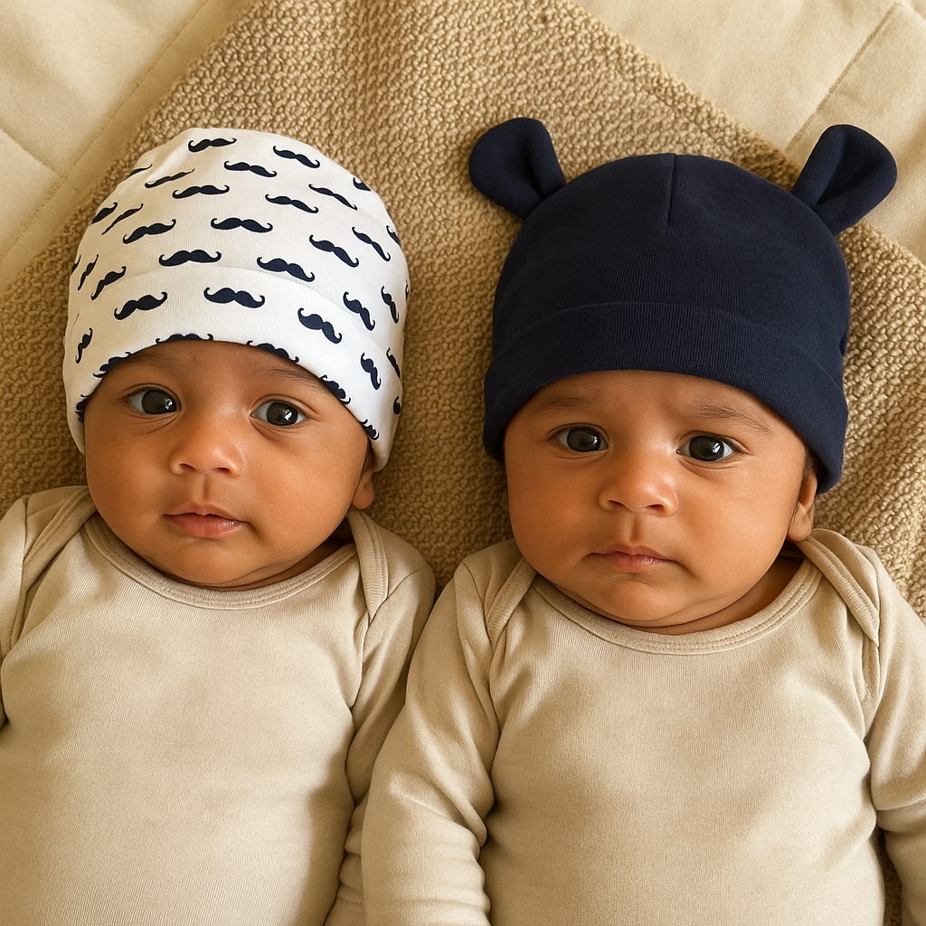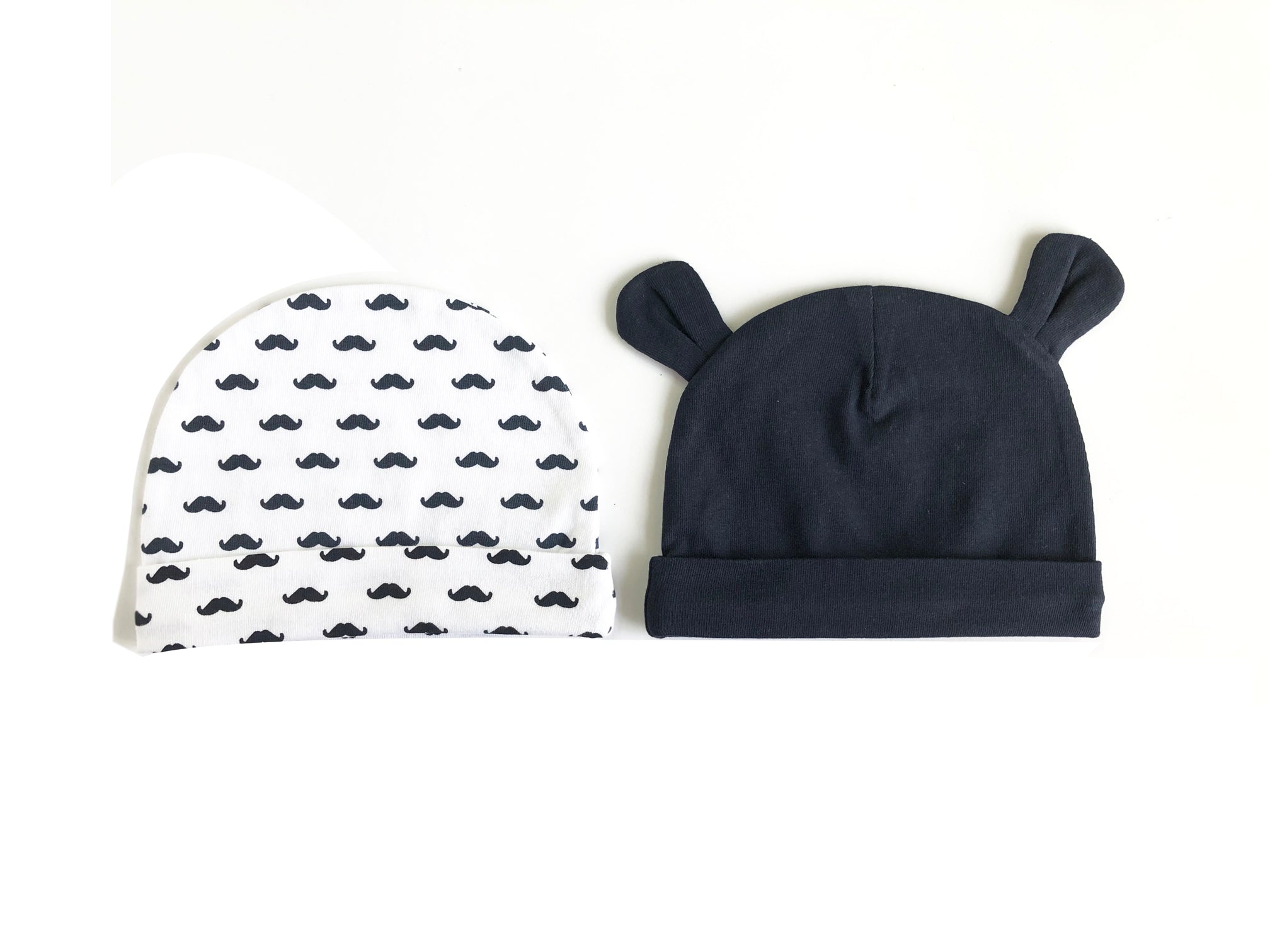 Set of Two Jersey Caps for babies especially made to suit the muslin swaddle blankets and muslin wraps we have in our store.