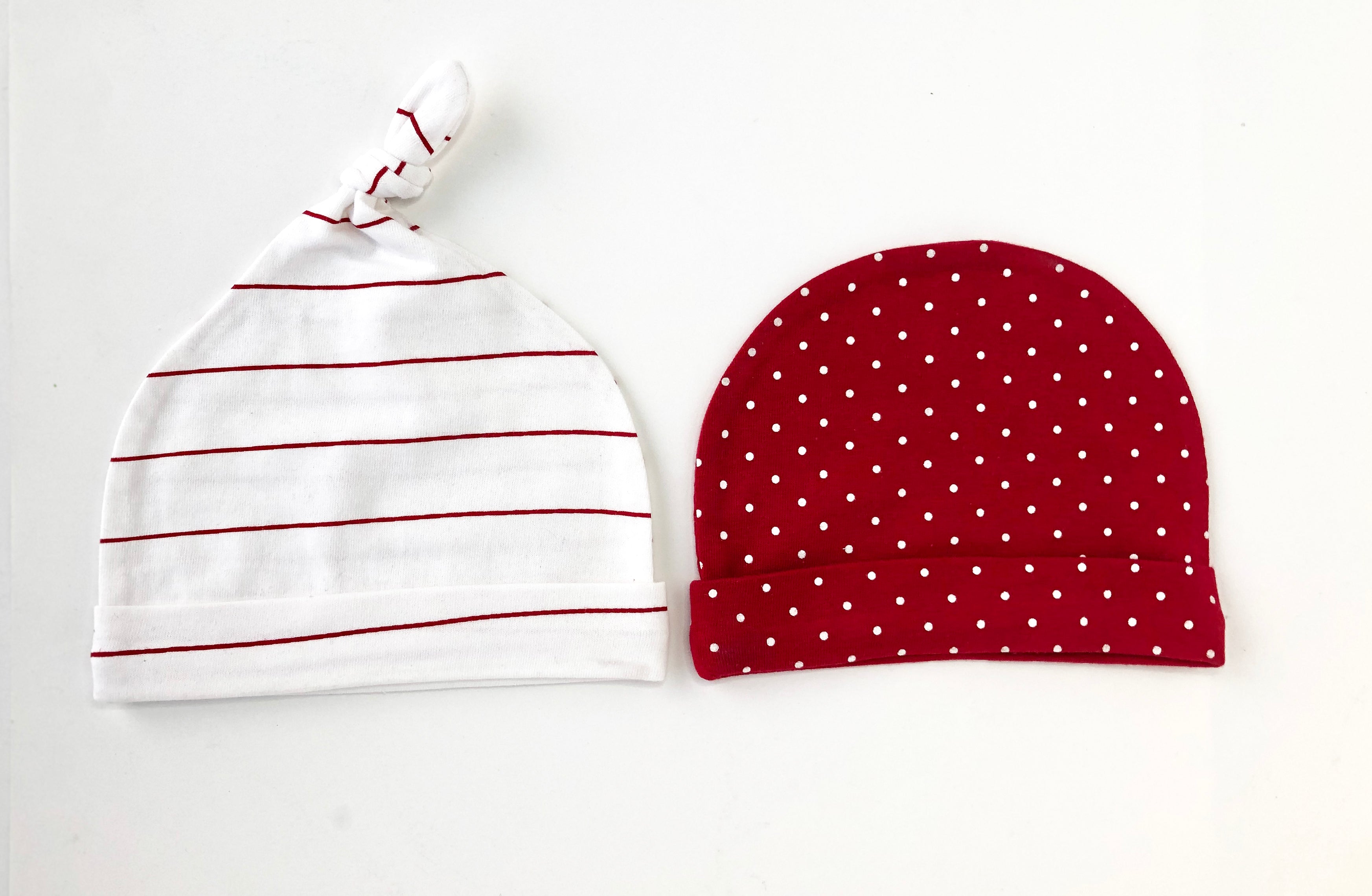 Set of Two Jersey Caps for babies especially made to suit the muslin swaddle blankets and muslin wraps we have in our store.