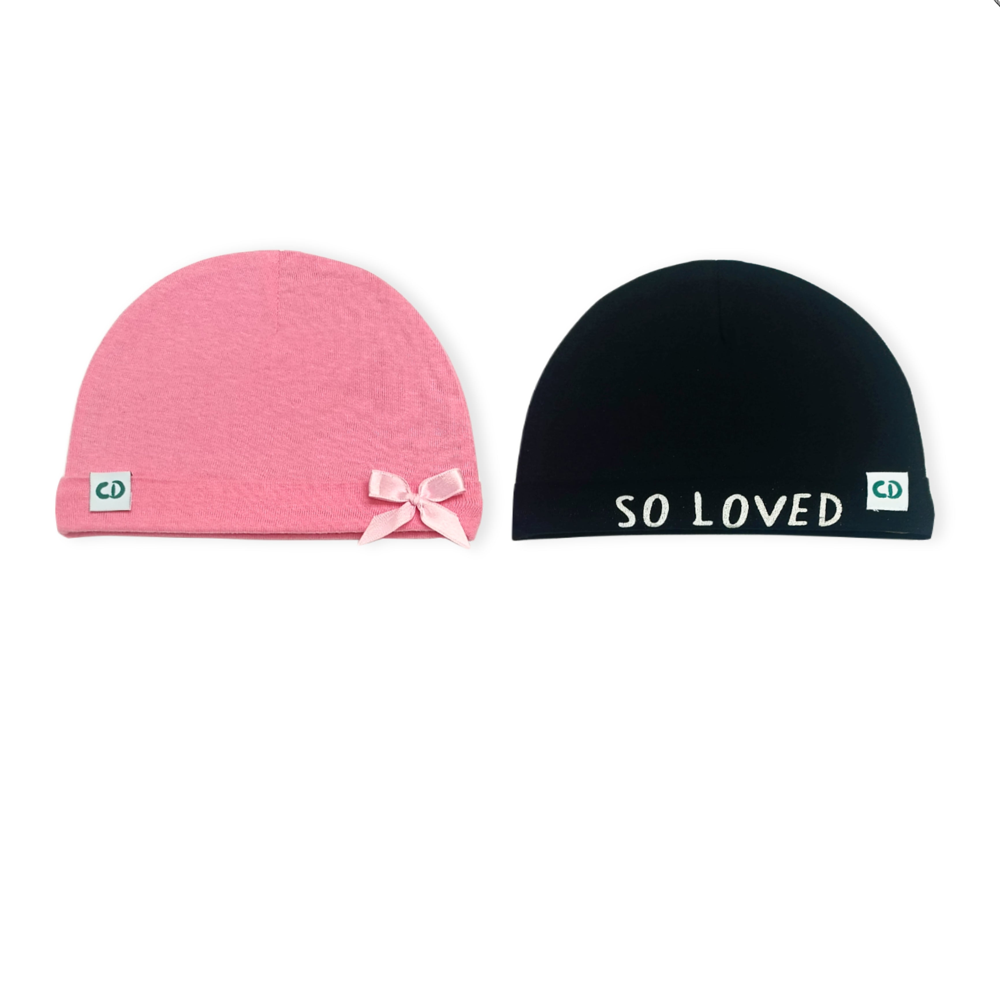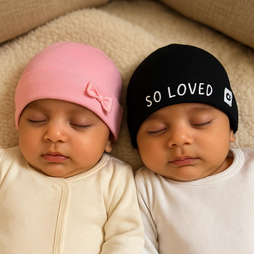 Set of Two Jersey Caps for babies especially made to suit the muslin swaddle blankets and muslin wraps we have in our store.