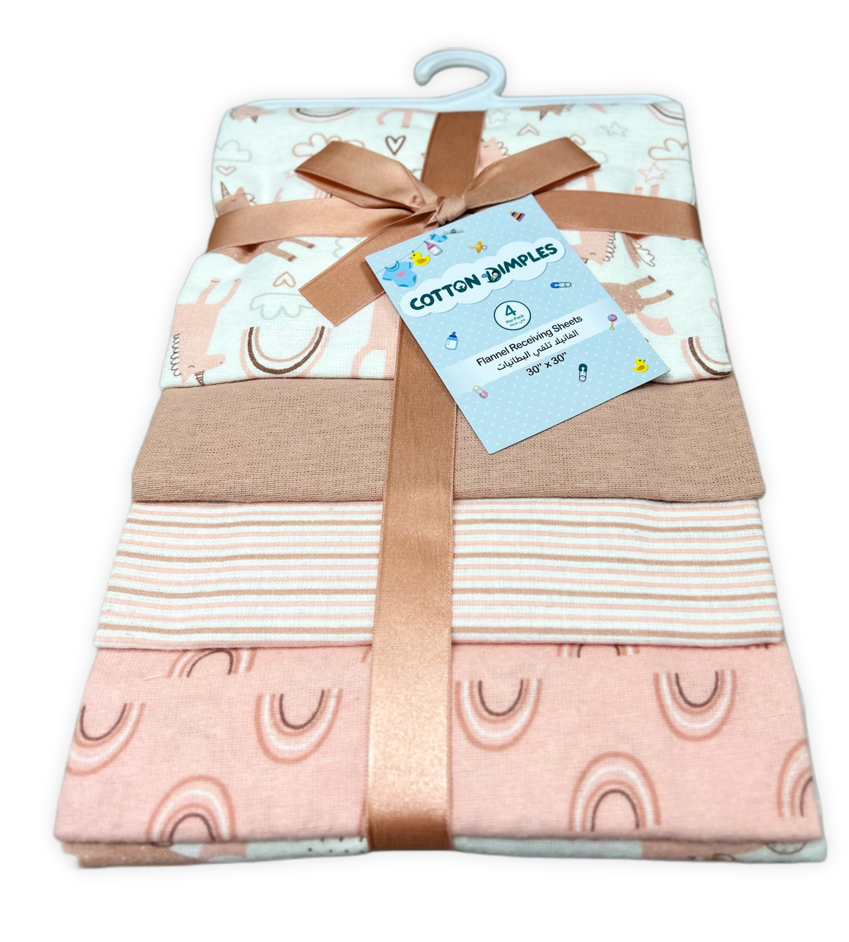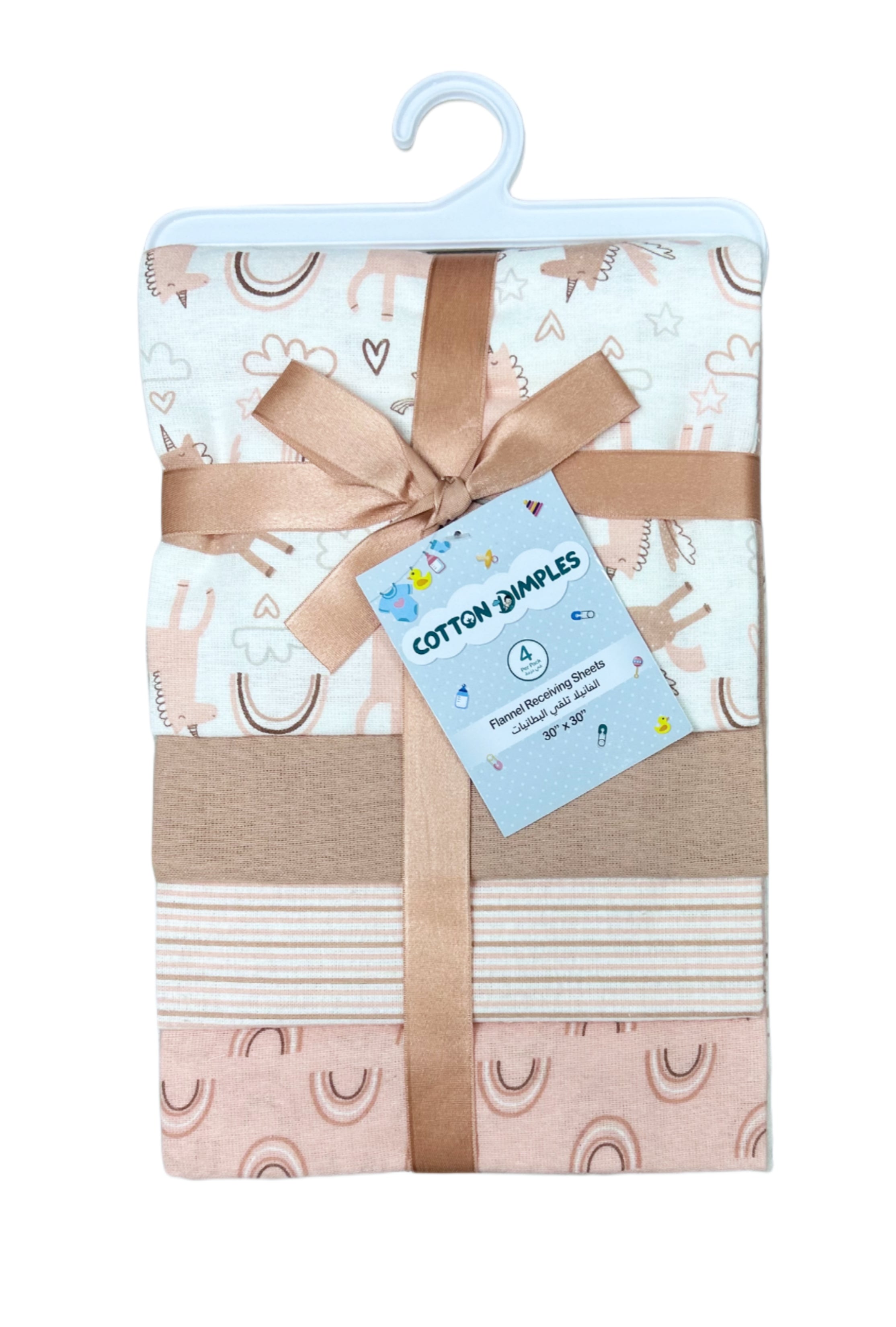 Cotton Dimples cotton flannel receiving sheets are versatile baby blankets with a variety of uses. Great as a blanket, nursing cover, burp cloth, car seat cover, tummy time, changing pad cover and more. Our receiving blankets are made with 100% cotton flannel for the softest touch on your baby's skin.