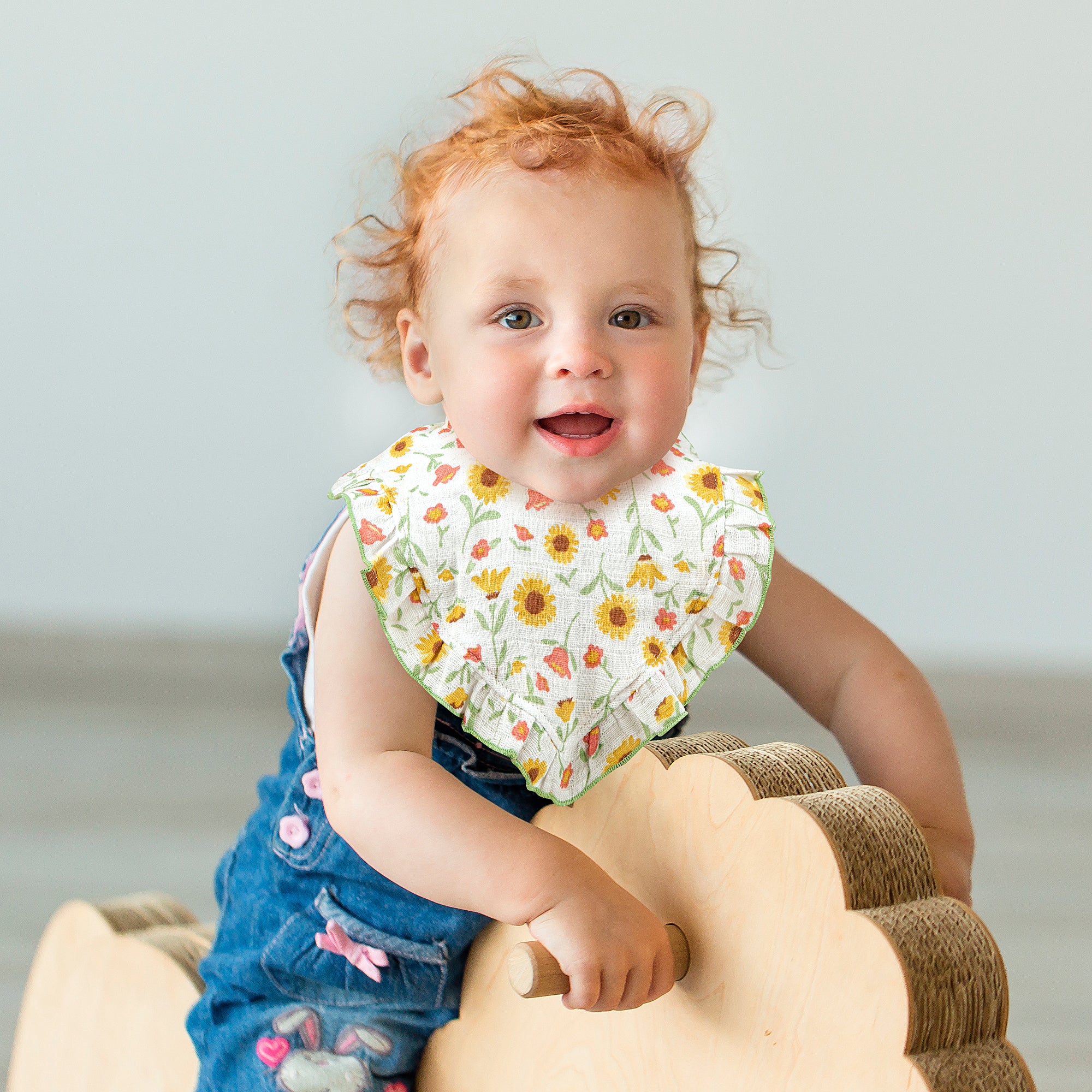 Cotton muslin bandana bibs in attractive prints. These are very soft and absorbent. Softness retains even after multiple wash. Since its in the style of a bandana, its a bib and an accessory to style your baby's clothing on a solid or any printed onesie or a footie.
