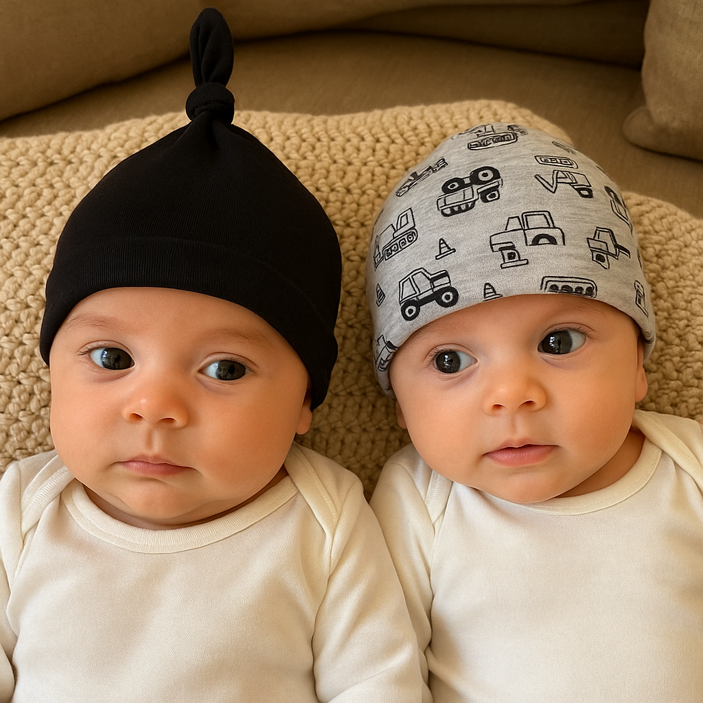 Set of Two Jersey Caps for babies especially made to suit the muslin swaddle blankets and muslin wraps we have in our store.