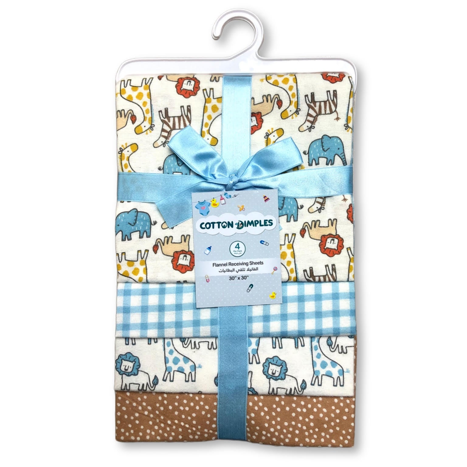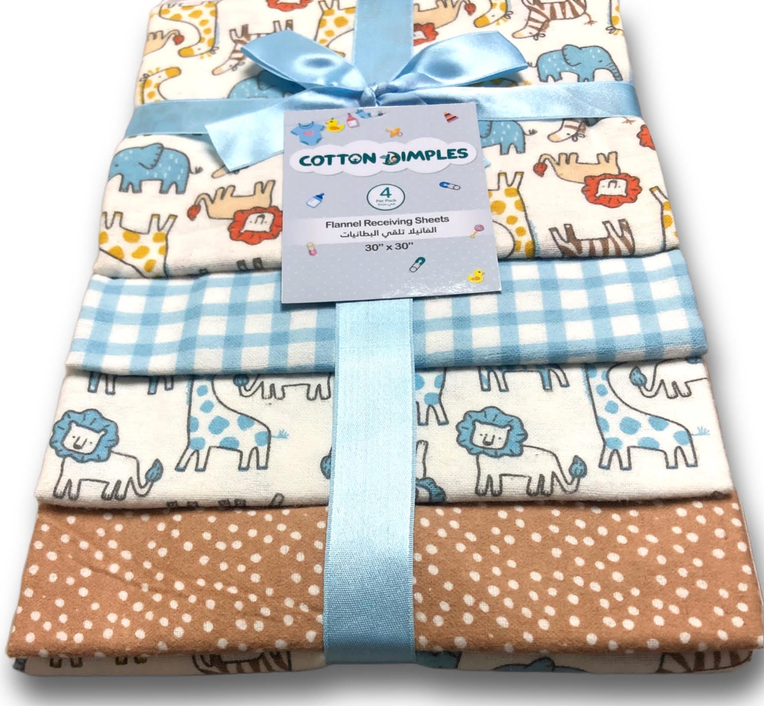 Cotton Dimples cotton flannel receiving sheets are versatile baby blankets with a variety of uses. Great as a blanket, nursing cover, burp cloth, car seat cover, tummy time, changing pad cover and more. Our receiving blankets are made with 100% cotton flannel for the softest touch on your baby's skin.