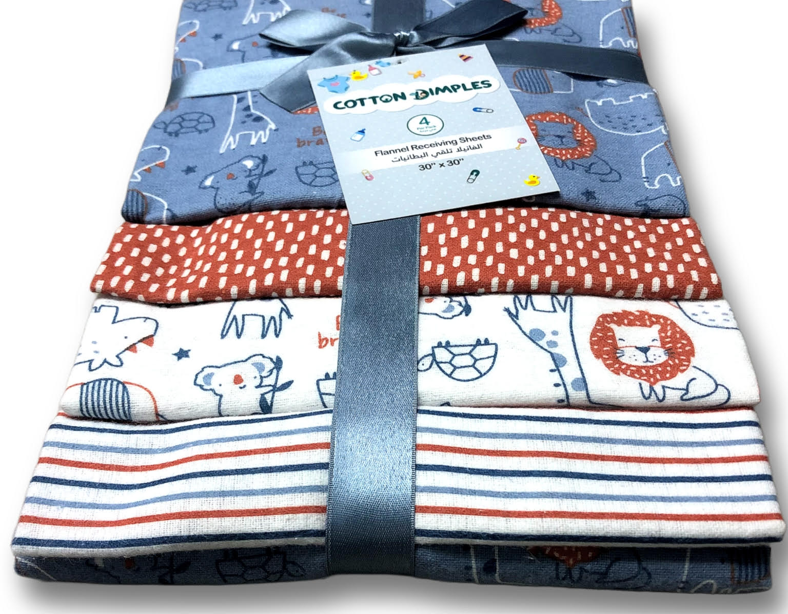 Cotton Dimples cotton flannel receiving sheets are versatile baby blankets with a variety of uses. Great as a blanket, nursing cover, burp cloth, car seat cover, tummy time, changing pad cover and more. Our receiving blankets are made with 100% cotton flannel for the softest touch on your baby's skin.
