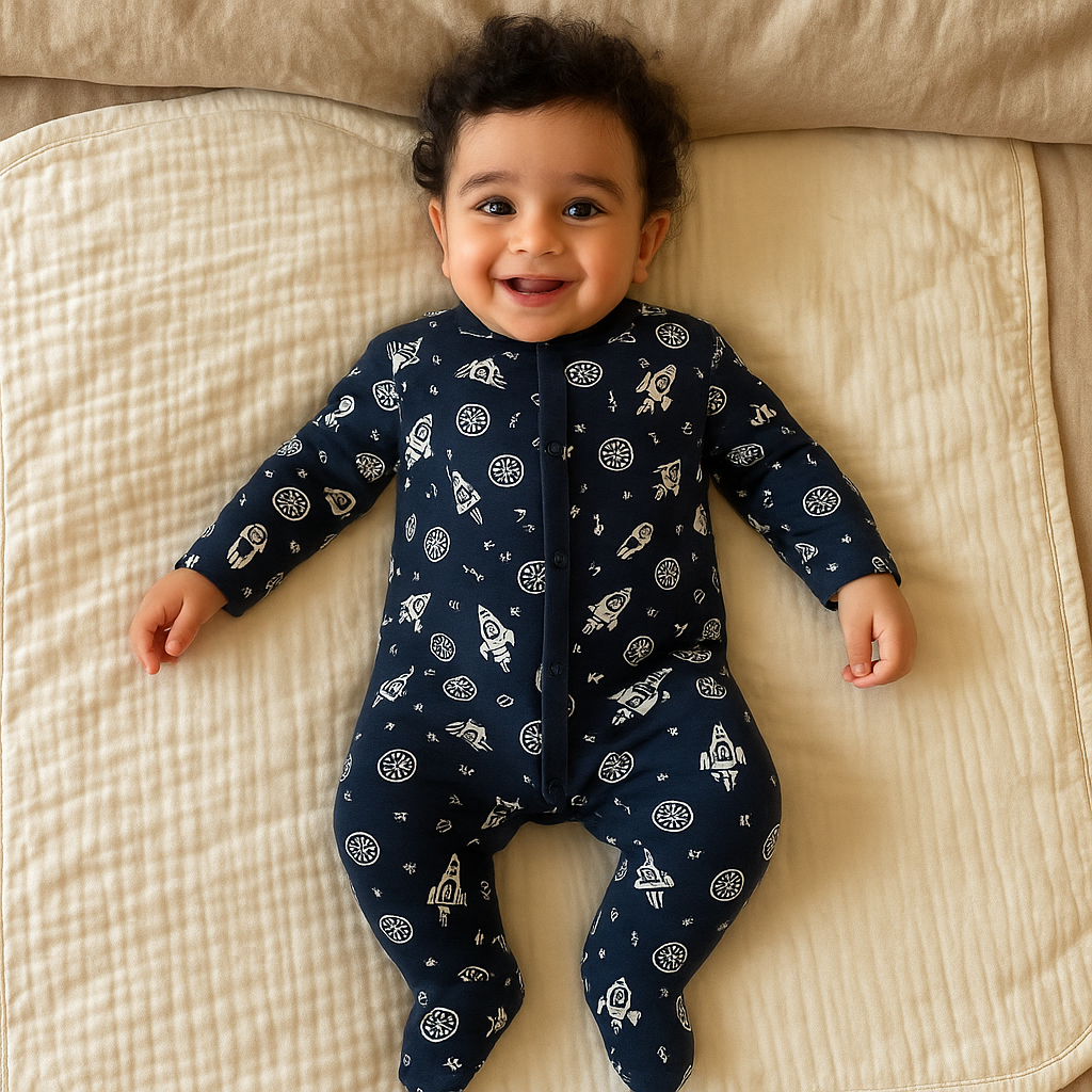 - One-piece outfit makes changes hassle-free and help cut back on laundry and diaper bag packing.