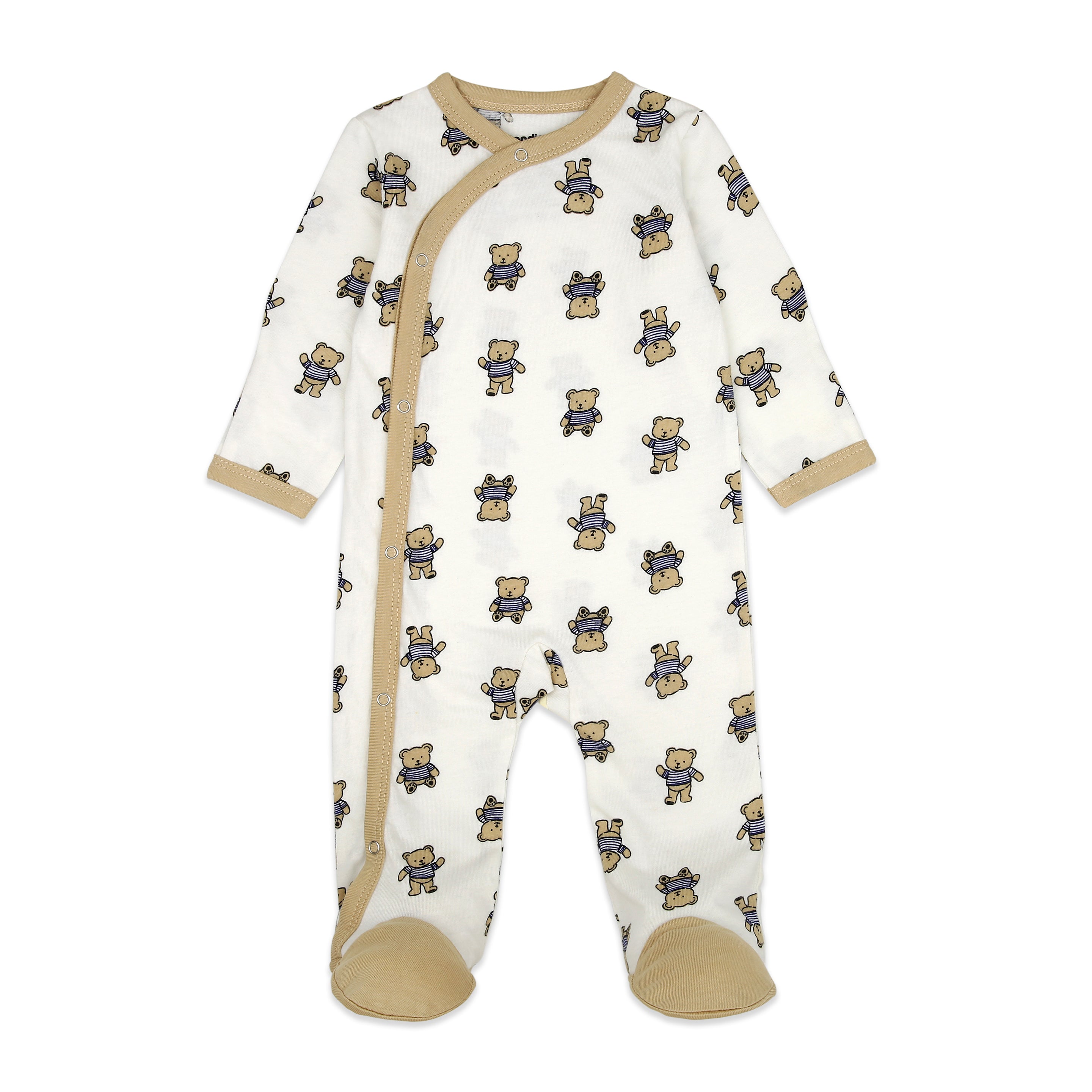 • Bear Printed Side Snap Footie: A cozy, side-snap footie featuring an adorable bear print with contrast rib detailing, ensuring your baby stays warm and comfortable. And you can do quick diaper changes