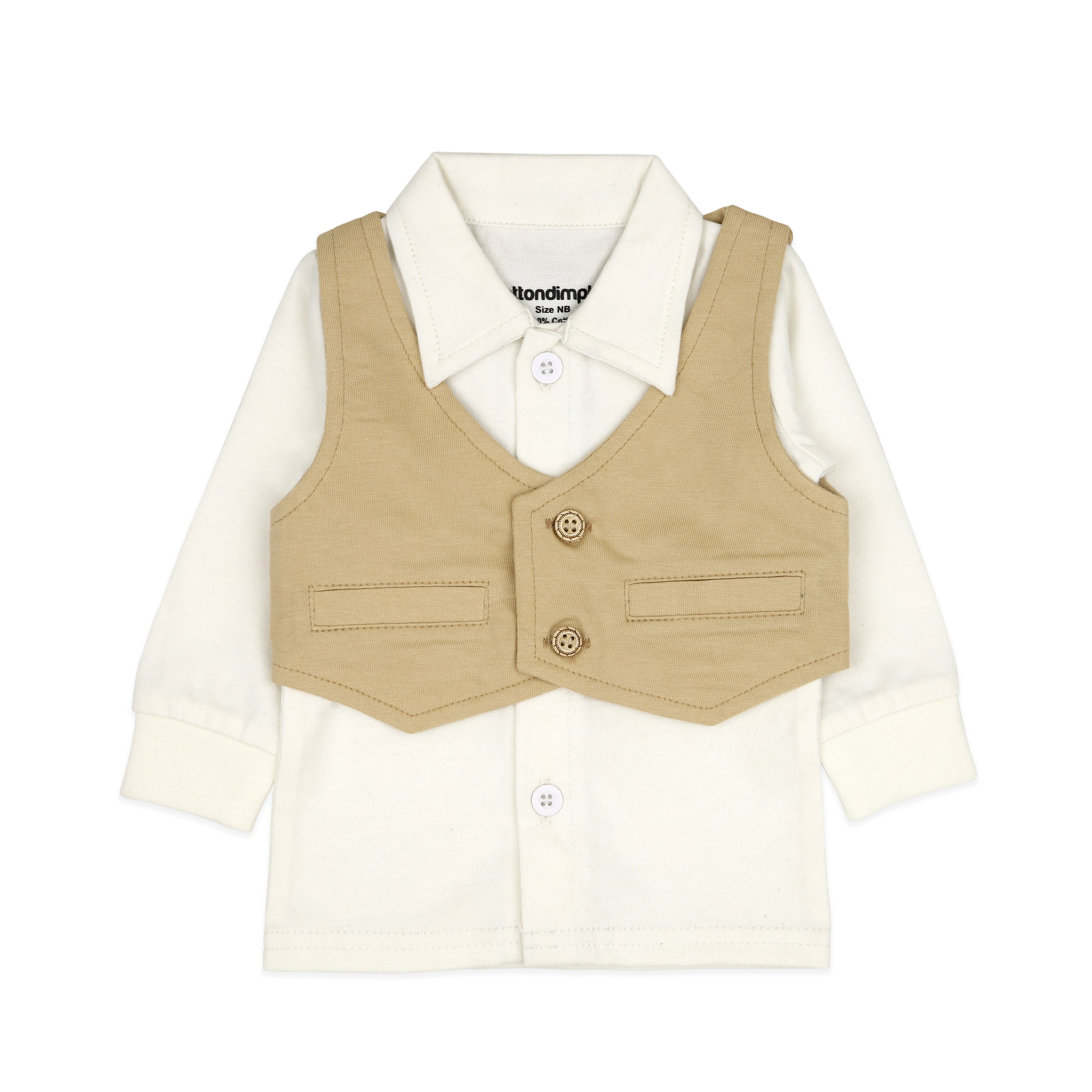 • Full Sleeve Collar Button-Down Shirt: A classic button-down shirt with a charming collar and full sleeves, paired with a contrast vest for a picture-perfect look.