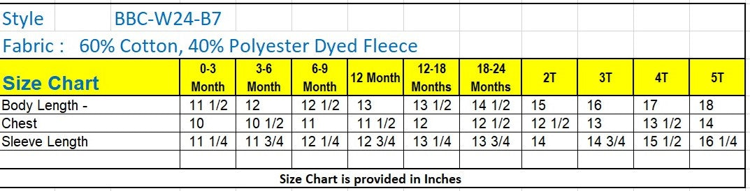 - Fabric: Poly Cotton blended Fleece
