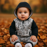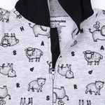 Let your little explorer roam in cozy style with this snug fleece coverall! Designed with an adorable all-over safari animal print, contrast black sleeves, and a comfy lined hood, this piece brings warmth and charm together. The two-way zipper makes diaper changes a breeze, while ribbed cuffs at the sleeves and ankles keep the chill out. Whether it's for naptime or a day out, this full-body suit keeps your baby bundled in comfort.