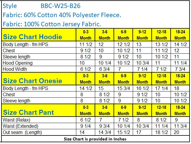 Hoodie & Pants: 60% Cotton, 40% Polyester Fleece
