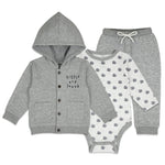 Wrap your little one in comfort and cuteness with our 3-piece “Little & Loved” set, thoughtfully crafted for everyday warmth and style. This charming ensemble includes: