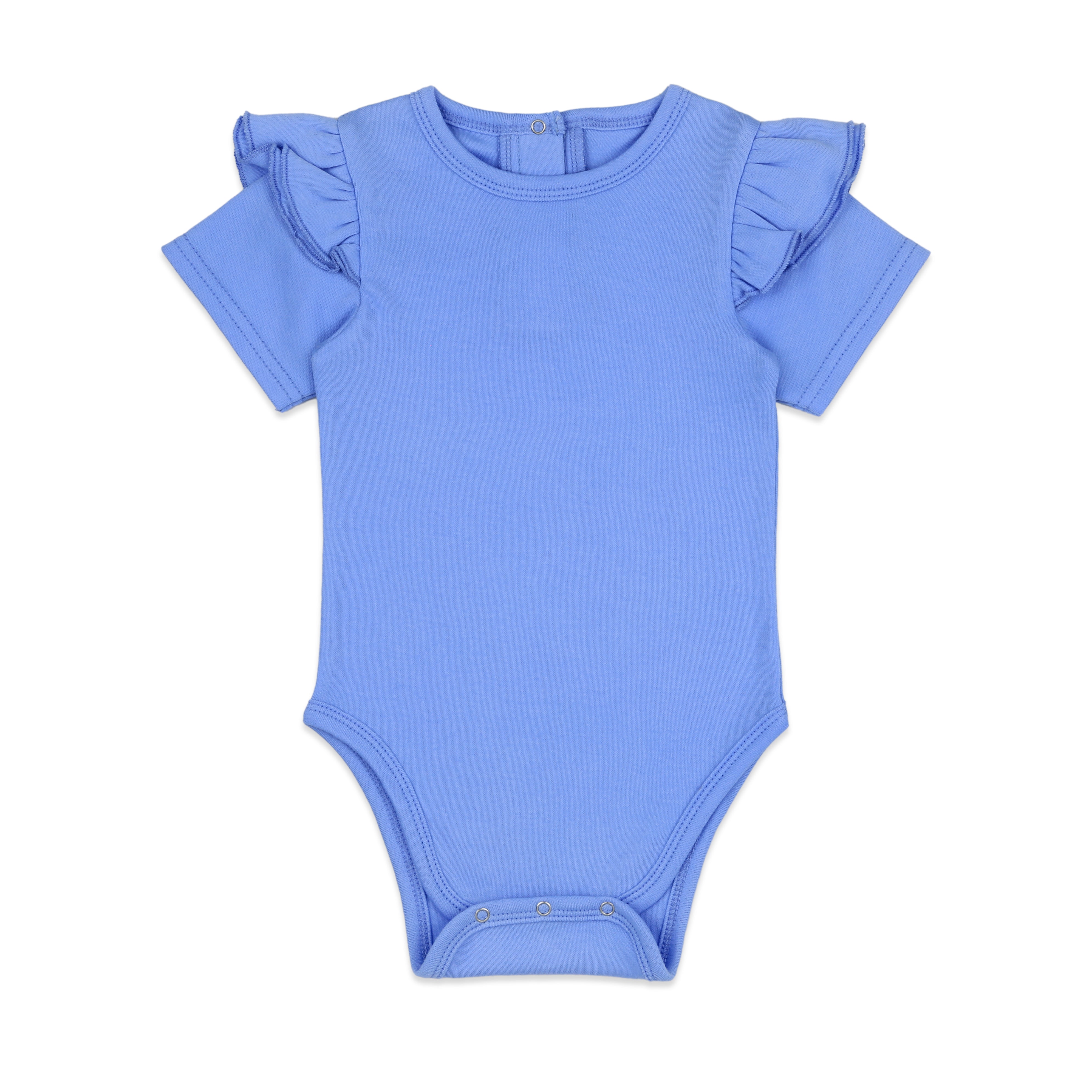 - Onesie - Snap buttons at back for easy slip. Flutter sleeves to add extra cuteness