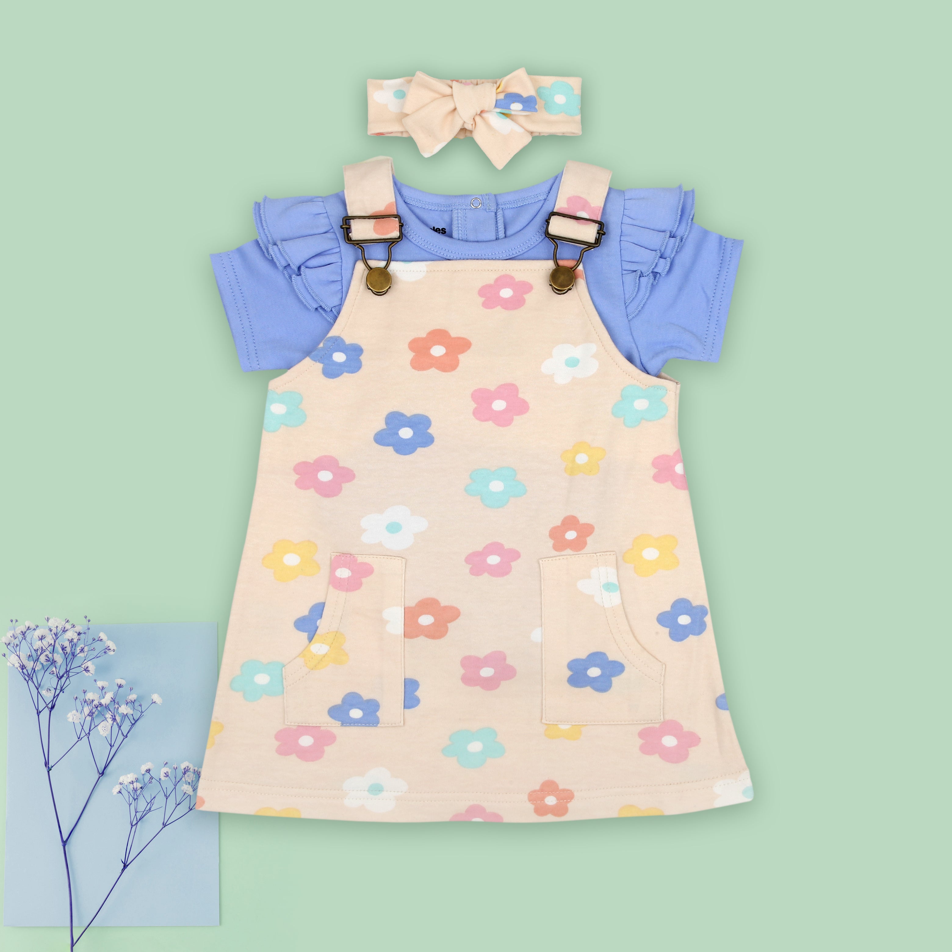 - Easy three-piece outfit contains one shirt, one headband and one Shortall dress