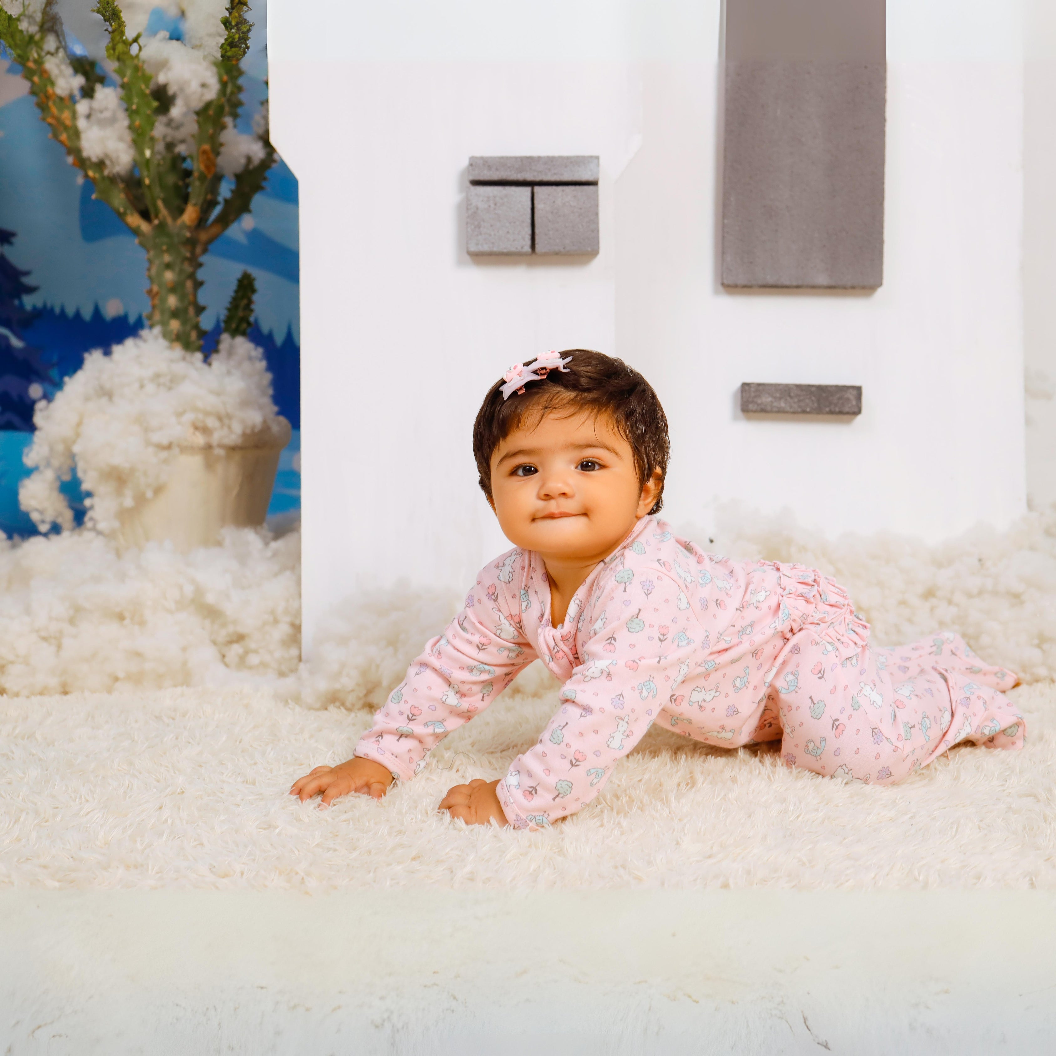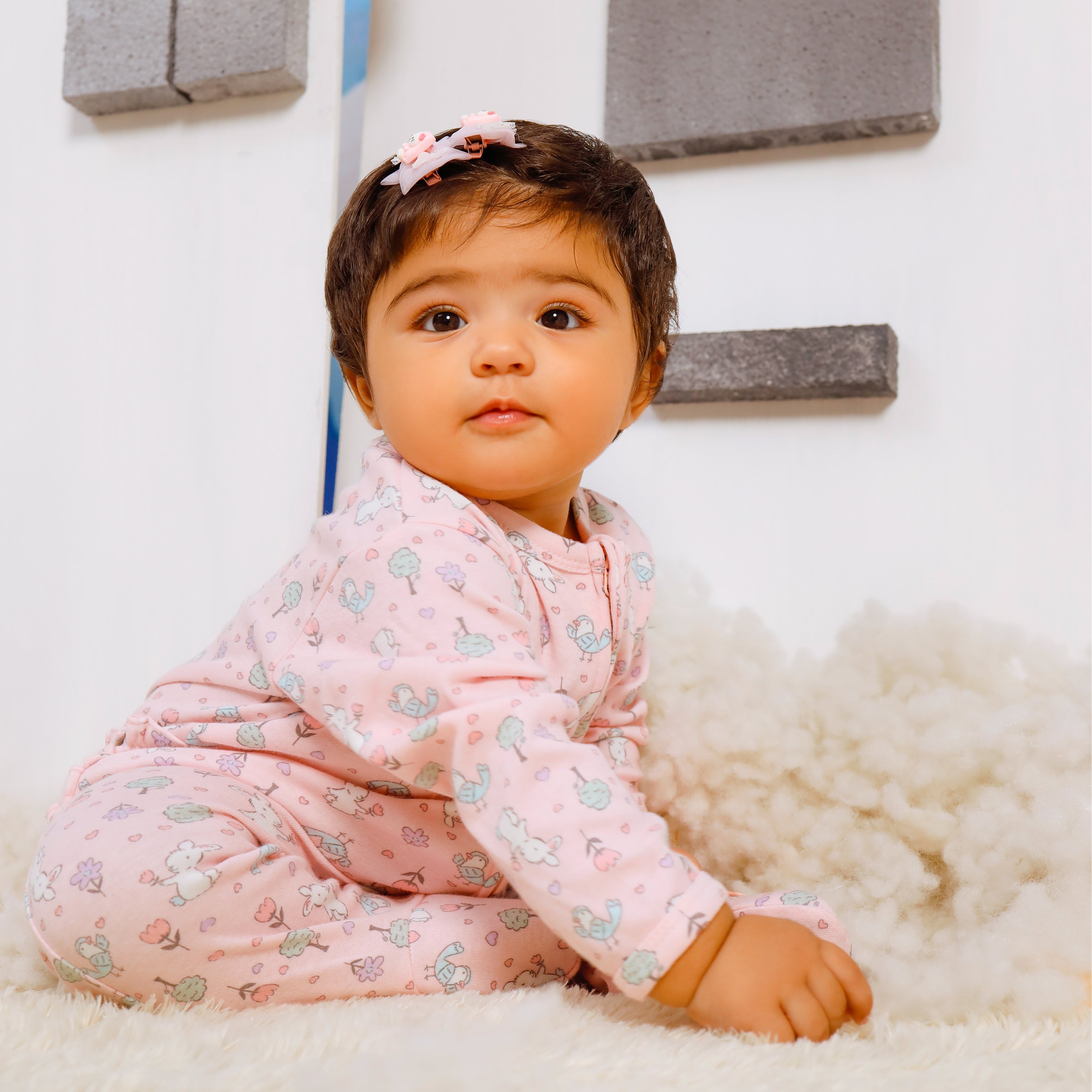 One-piece outfit makes changes hassle-free and help cut back on laundry and diaper bag packing.