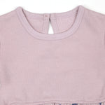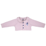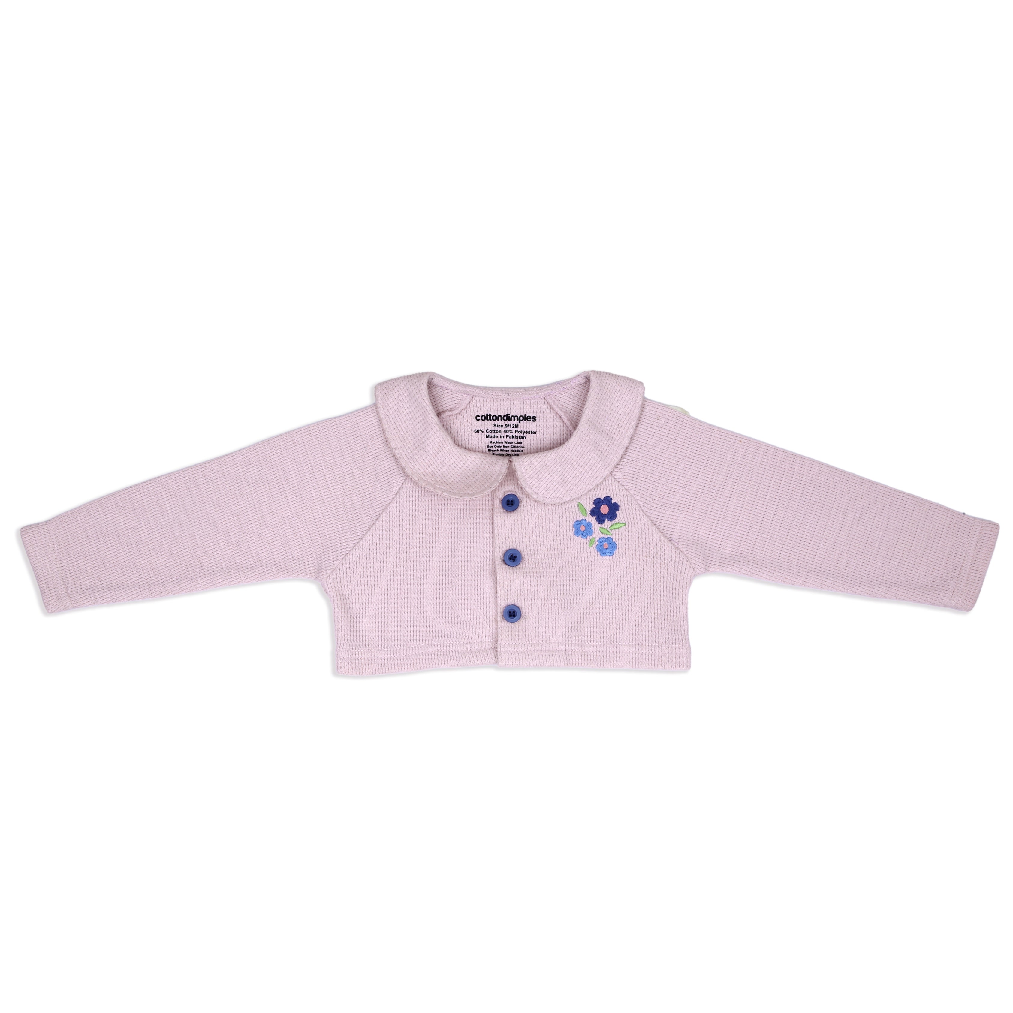 • Layered over it is a waffle knit bolero in a matching lavender tone, finished with delicate embroidery, front button closure, and a peter pan collar for a timeless look.