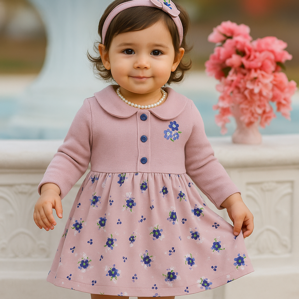 • The floral print dress is crafted from soft brushed fleece, keeping your little one warm and cozy while offering gentle stretch and breathability.