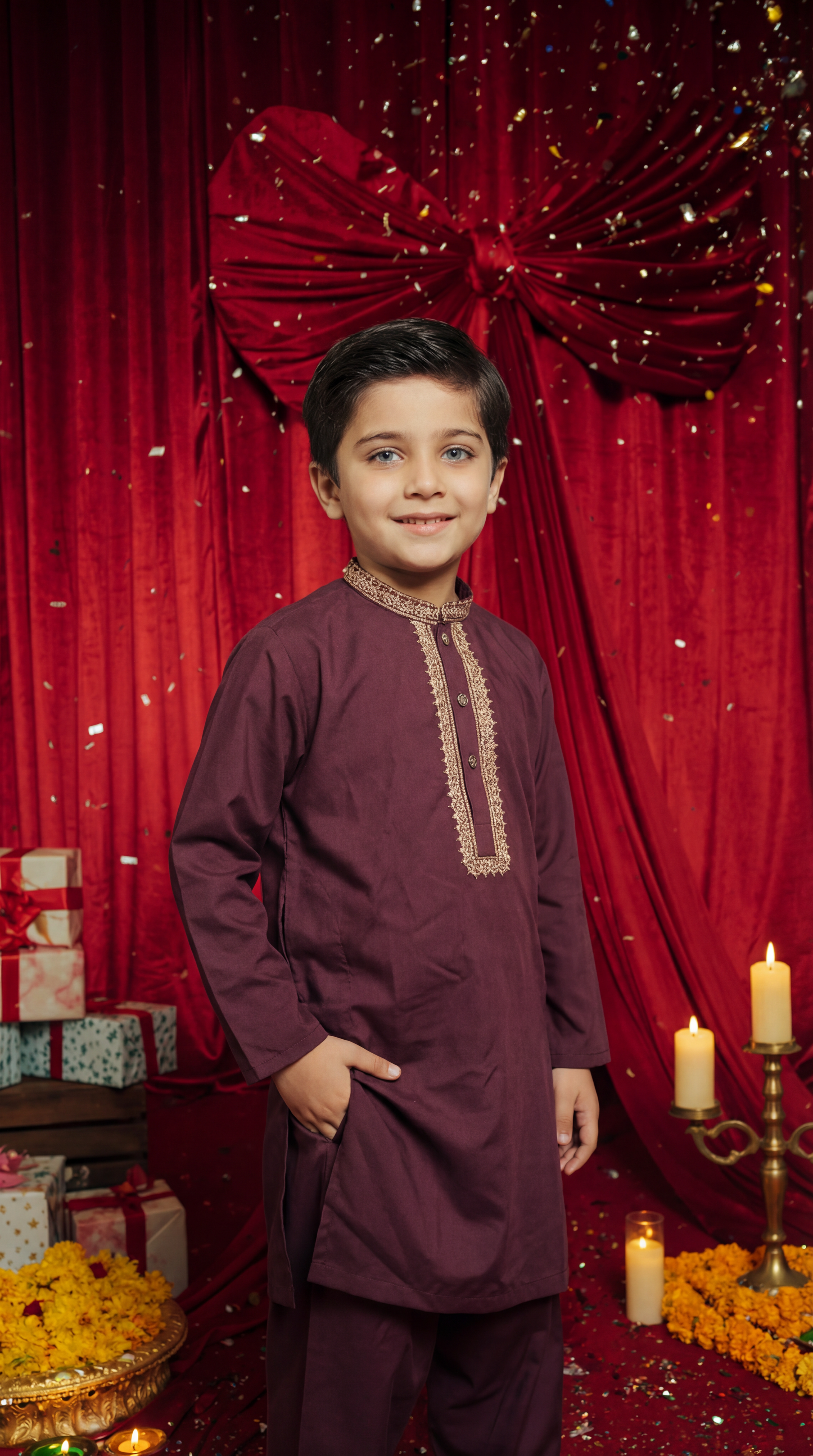 Refined kurta pajama set designed for young boys who love to dress sharp for every special occasion.