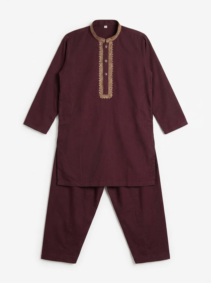 Crafted in premium Wash & Wear fabric, this set offers a smooth finish with a structured yet breathable feel — perfect for long festive days and family gatherings.