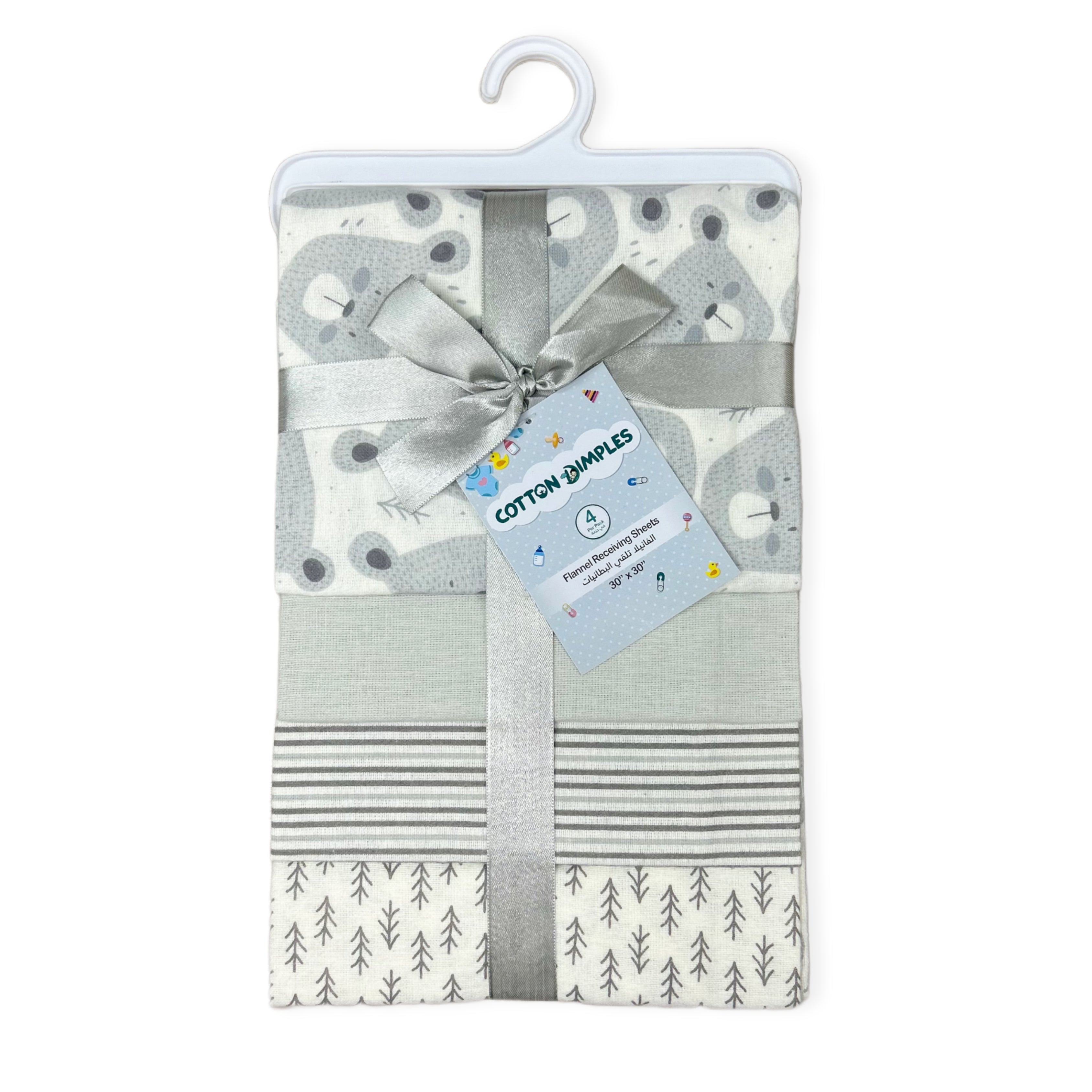 Cotton Dimples cotton flannel receiving sheets are versatile baby blankets with a variety of uses. Great as a blanket, nursing cover, burp cloth, car seat cover, tummy time, changing pad cover and more. Our receiving blankets are made with 100% cotton flannel for the softest touch on your baby's skin.