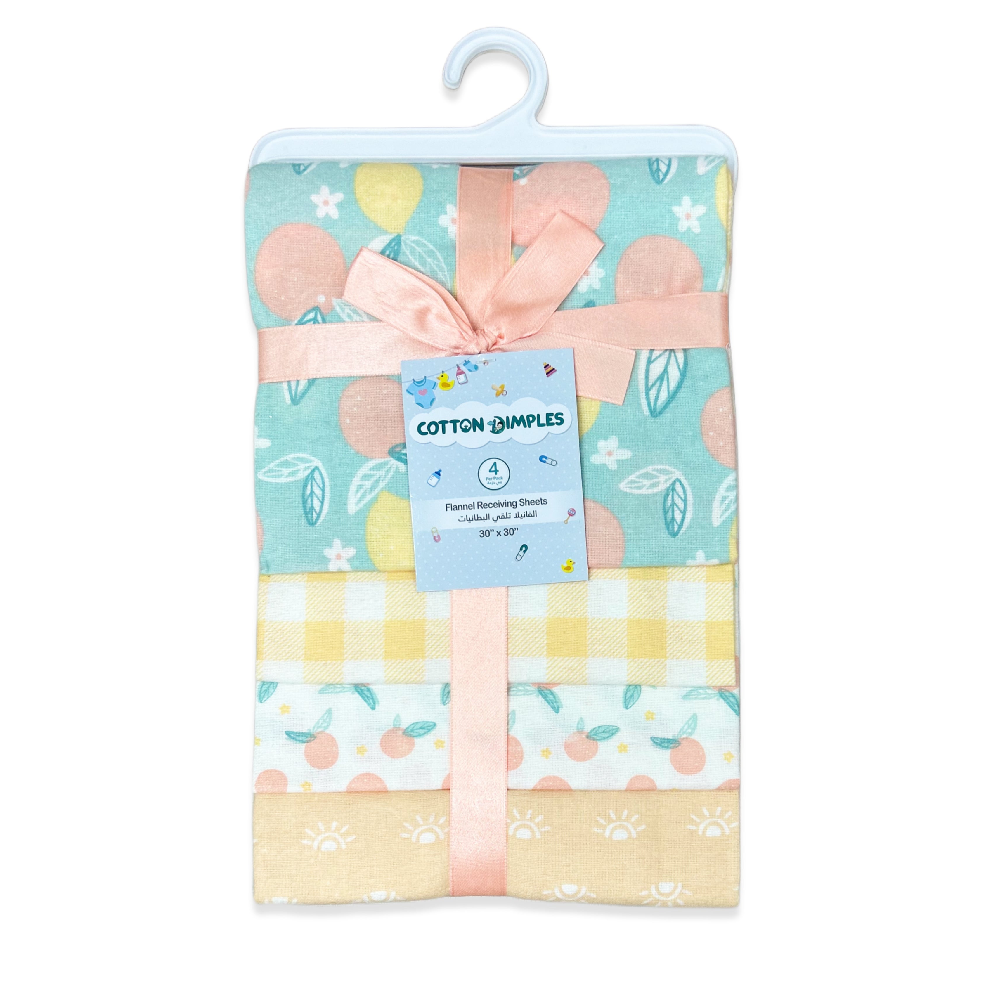 Cotton Dimples cotton flannel receiving sheets are versatile baby blankets with a variety of uses. Great as a blanket, nursing cover, burp cloth, car seat cover, tummy time, changing pad cover and more. Our receiving blankets are made with 100% cotton flannel for the softest touch on your baby's skin.