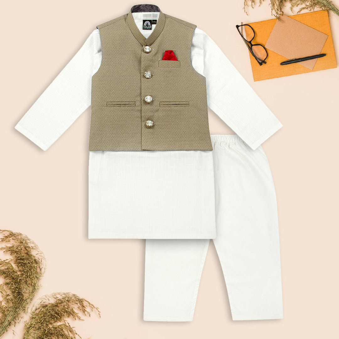 Elevate your ethnic wardrobe with our Off-white outfit, featuring a stylish waistcoat and classic kurta with loop button placket. Made from high-quality light weight cotton, this outfit exudes elegance and is versatile for both semi-formal and formal occasions. You can style the shalwar kameez with out without waistcoat.