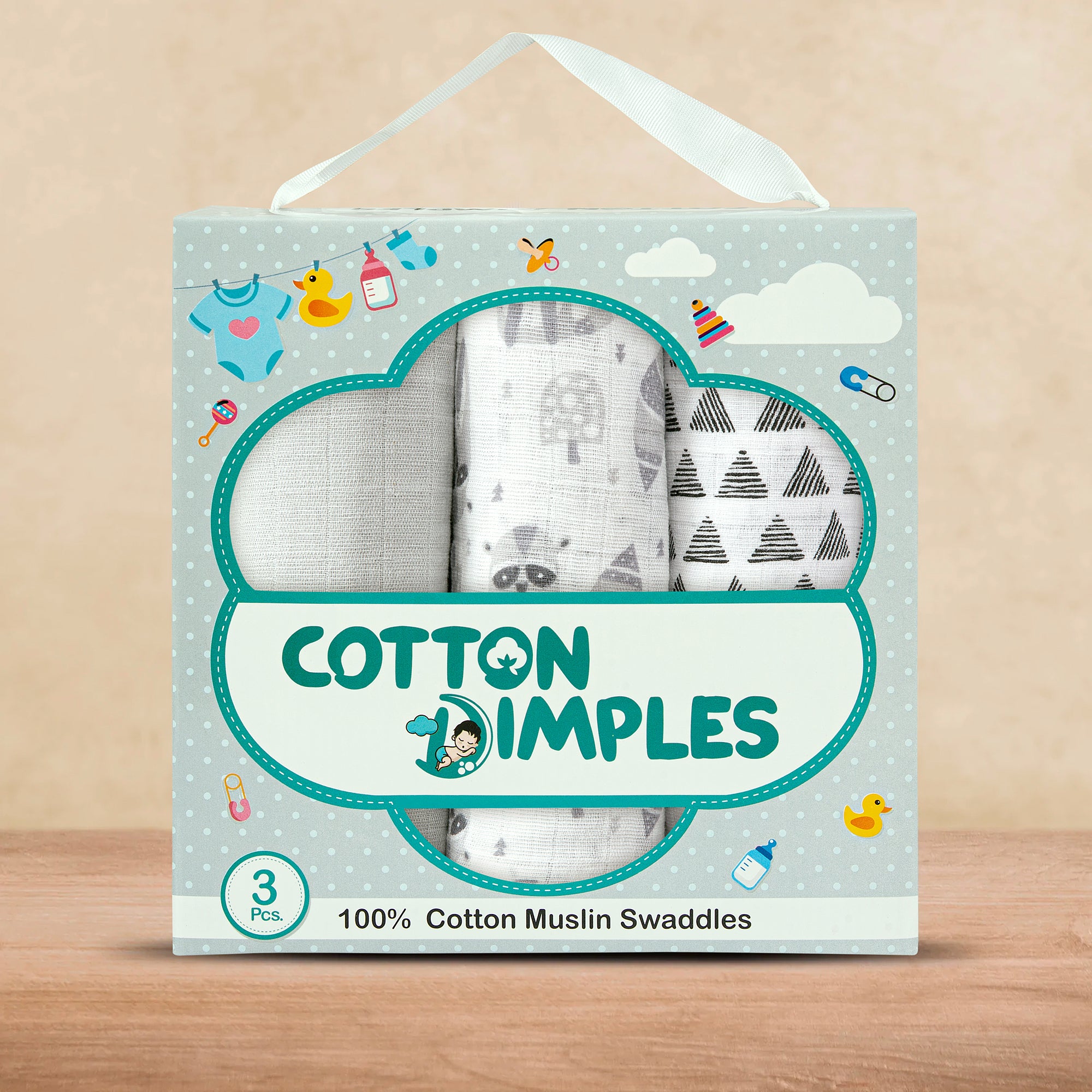 - Pack contains: 3 Muslin Swaddle/ Wrapping sheets