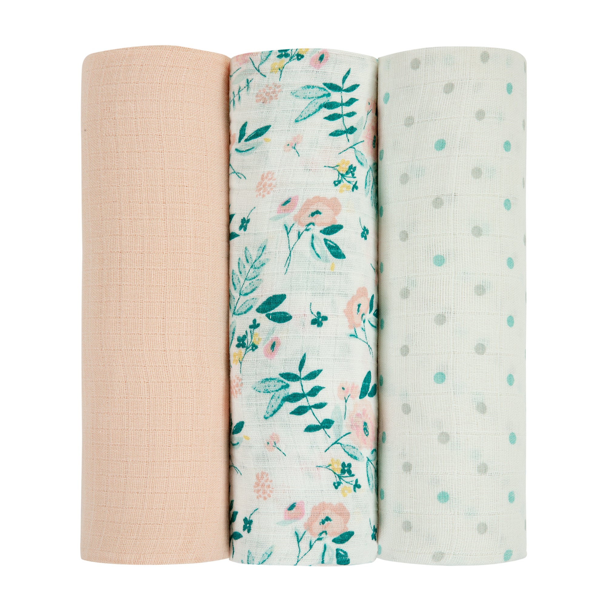 - Pack contains: 3 Muslin Swaddle/ Wrapping sheets