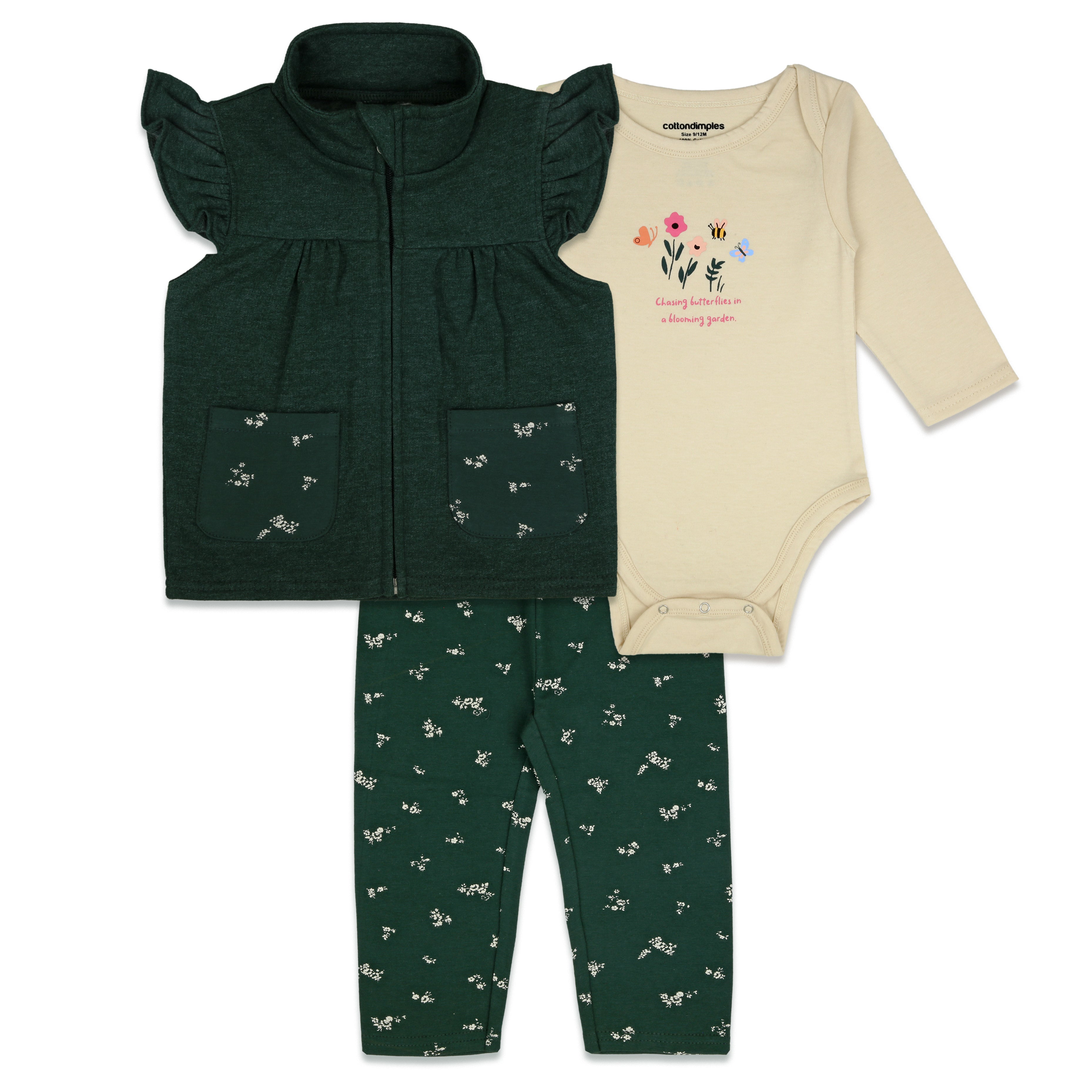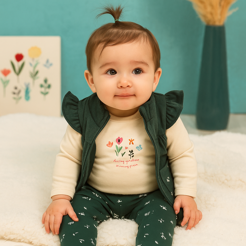 Let your little blossom shine in this cozy and charming 3-piece outfit set designed for comfort, style, and ease. Perfect for transitional weather or light winter layering, this coordinated set is crafted from premium soft fabrics gentle on your baby’s delicate skin.