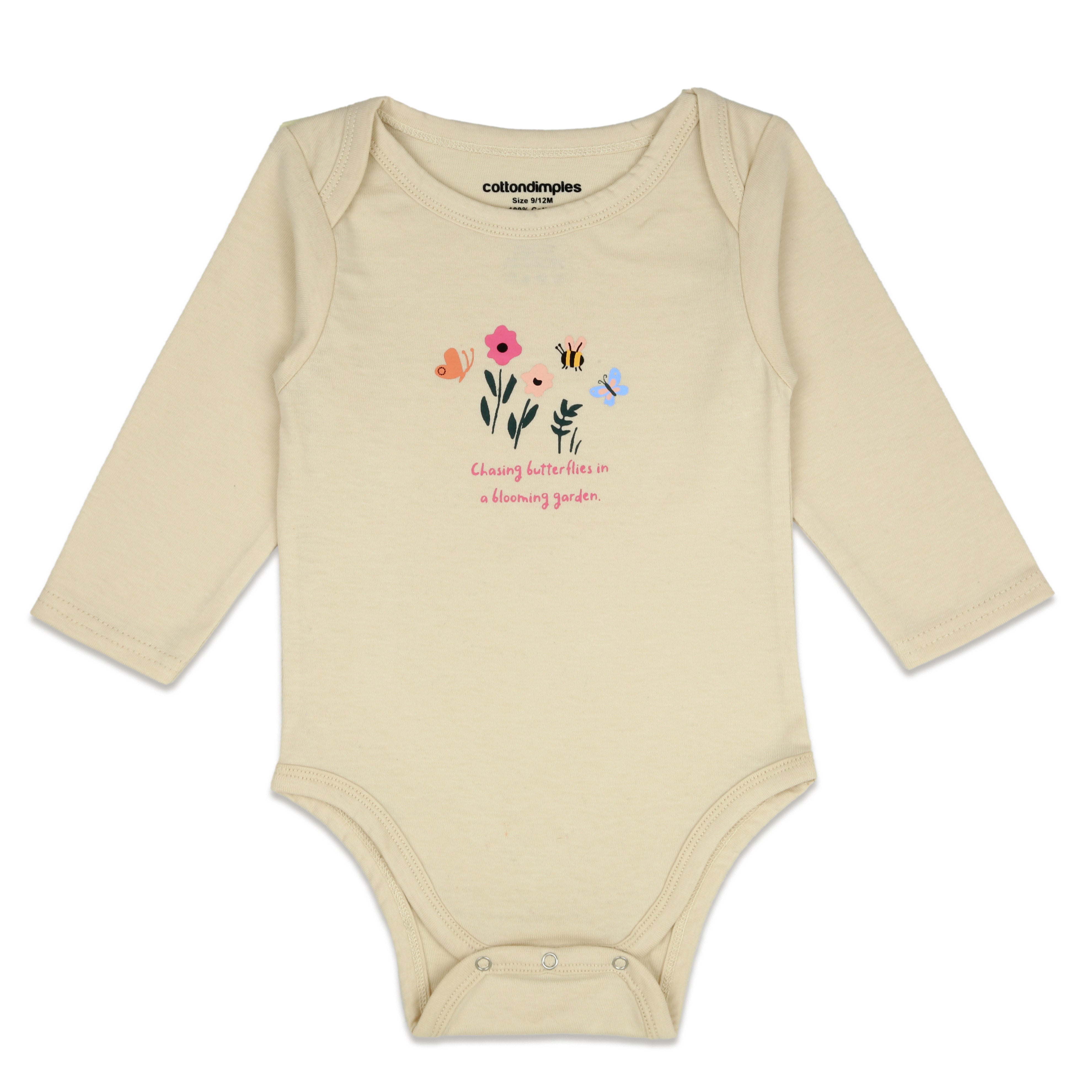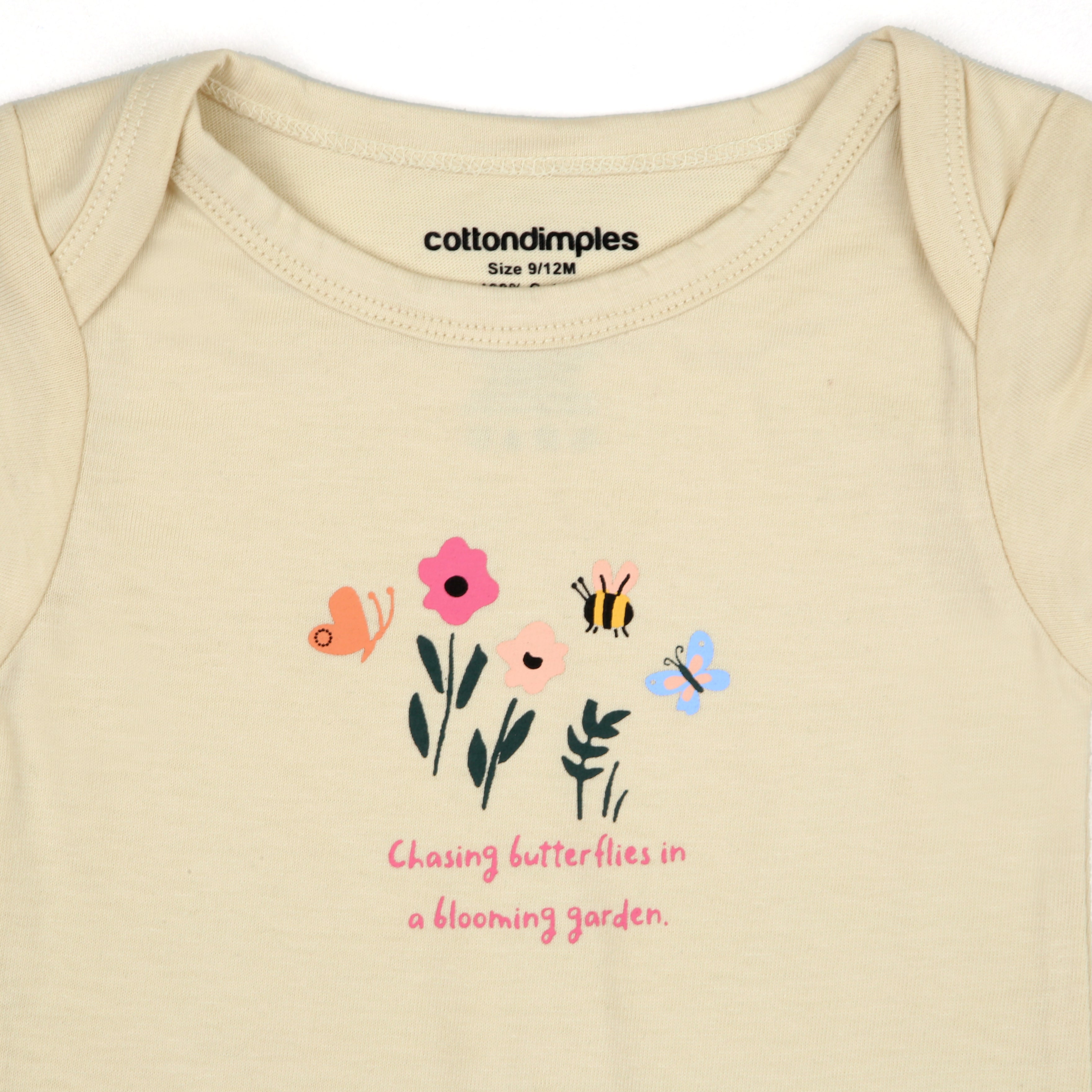 Adorned with sweet floral and bee-themed chest print: “Chasing butterflies in a blooming garden”