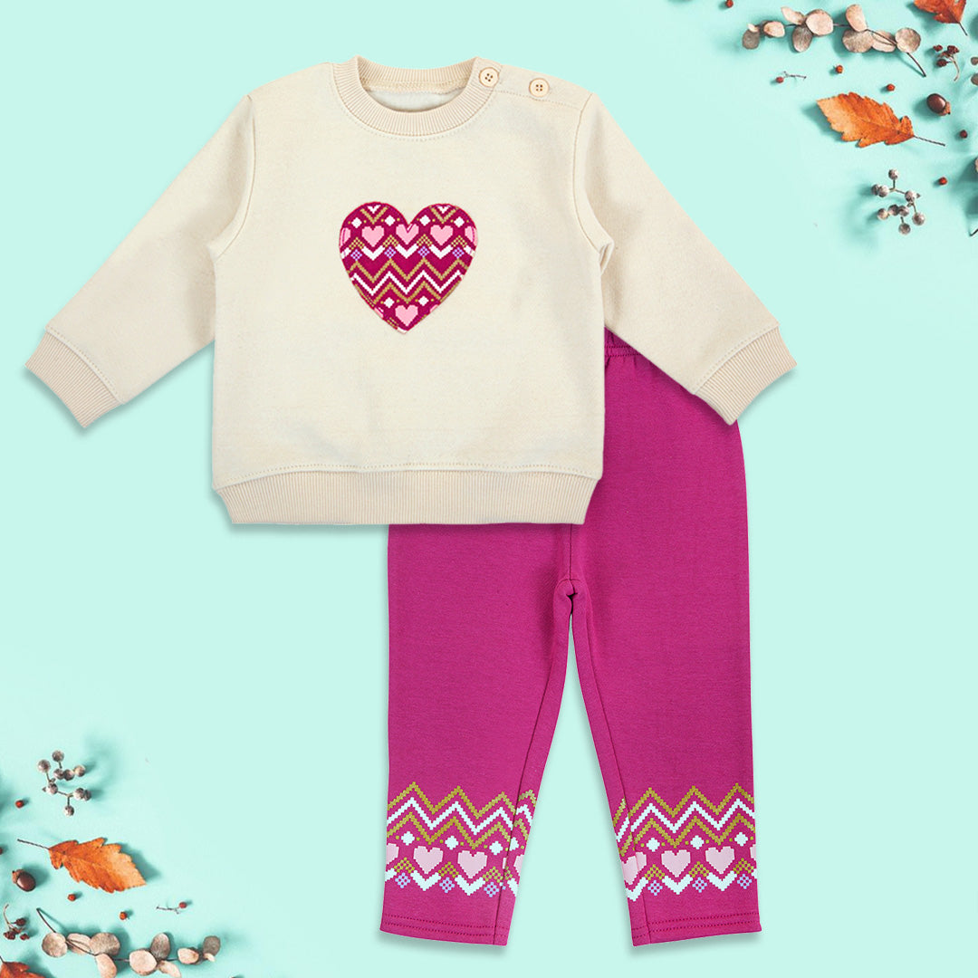 - Cute and Detailed Prints: The prints on both the top and bottom are thoughtfully designed, with detailed motifs that give the sweatsuit an extra touch of charm. These patterns are not only eye-catching but also fun, keeping your little one stylish and happy.