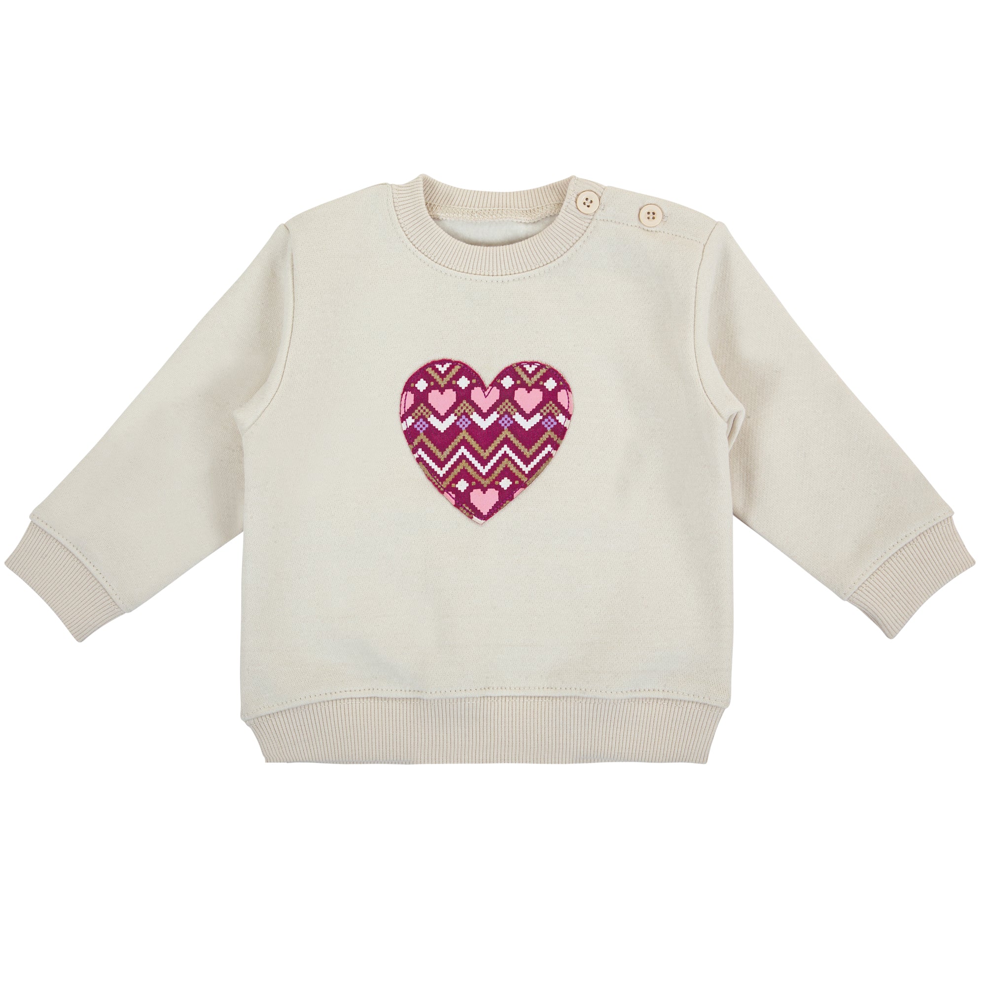 - Beige Sweatshirt: The soft, breathable beige sweatshirt provides a neutral, stylish base for this ensemble. Made from a comfortable and warm fabric, it ensures your little one stays cozy all day long.