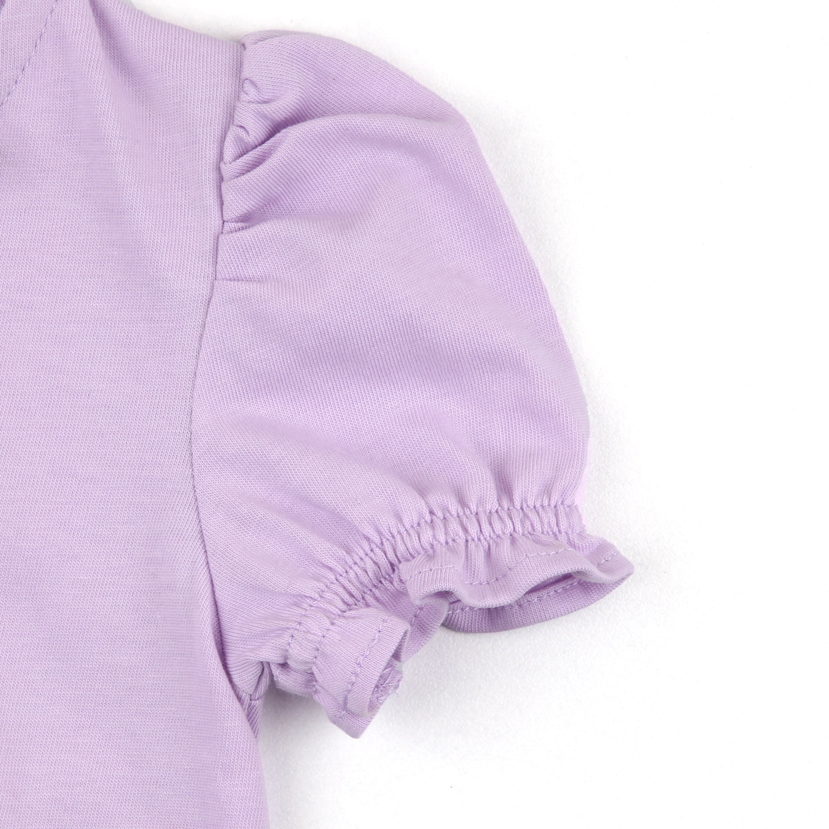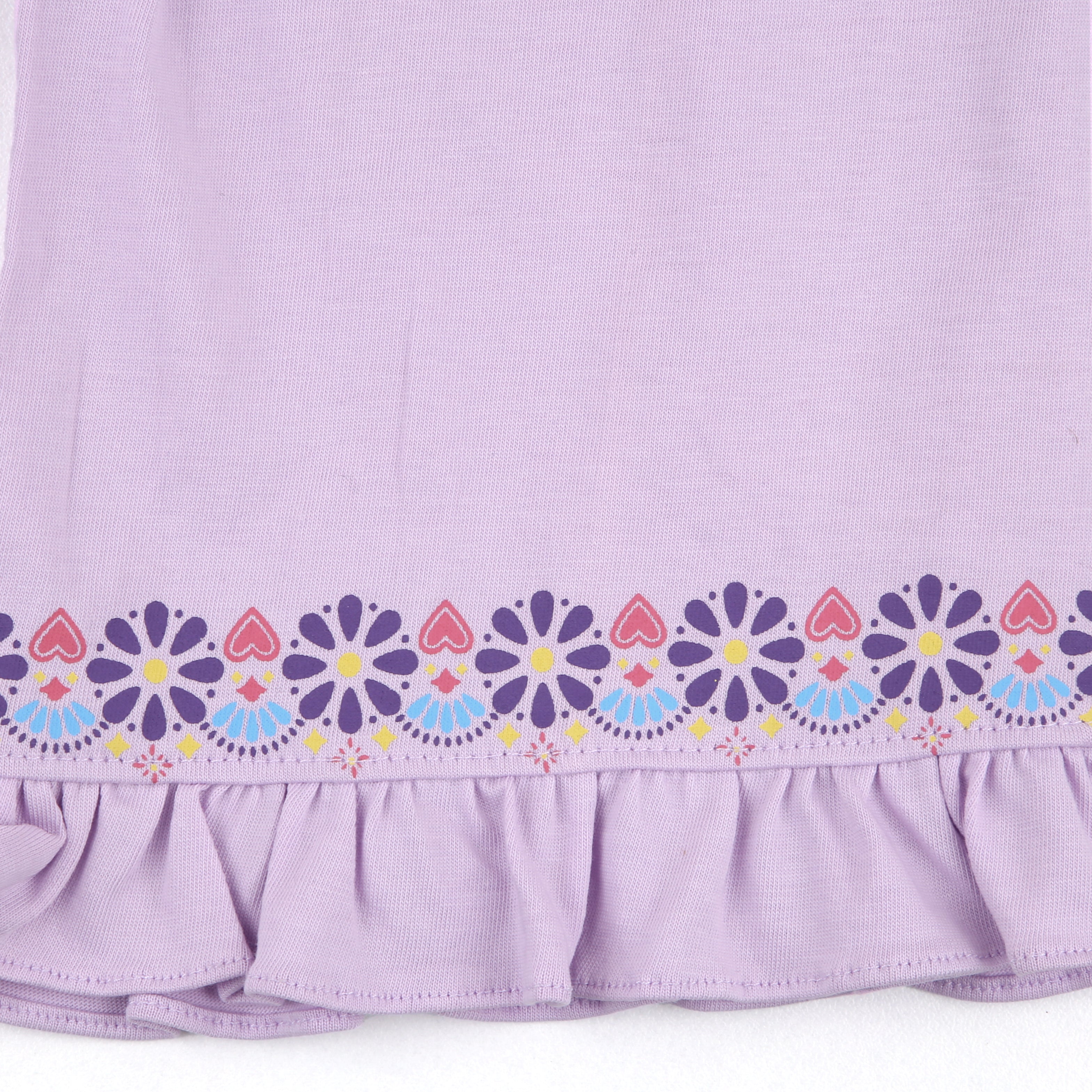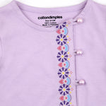 Let your little one bloom in Gul – 2 Pc Set, designed to bring grace and cheer to your baby's Eid look. This soft lavender ensemble features a flutter-sleeved top with a side panel of floral bootis delicately printed in vibrant hues. Pearl buttons add a touch of traditional charm while maintaining everyday comfort. The matching flared trousers are finished with printed floral borders and frill hems for a playful, festive finish.