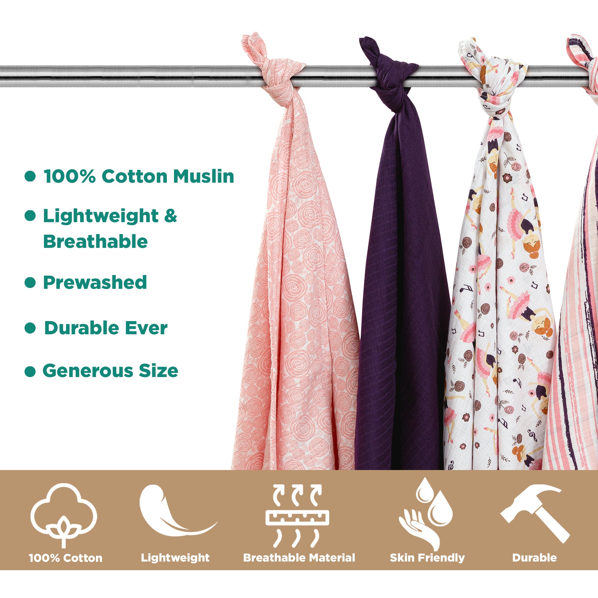 - Pack contains: 4 Muslin Swaddle/ Wrapping sheets