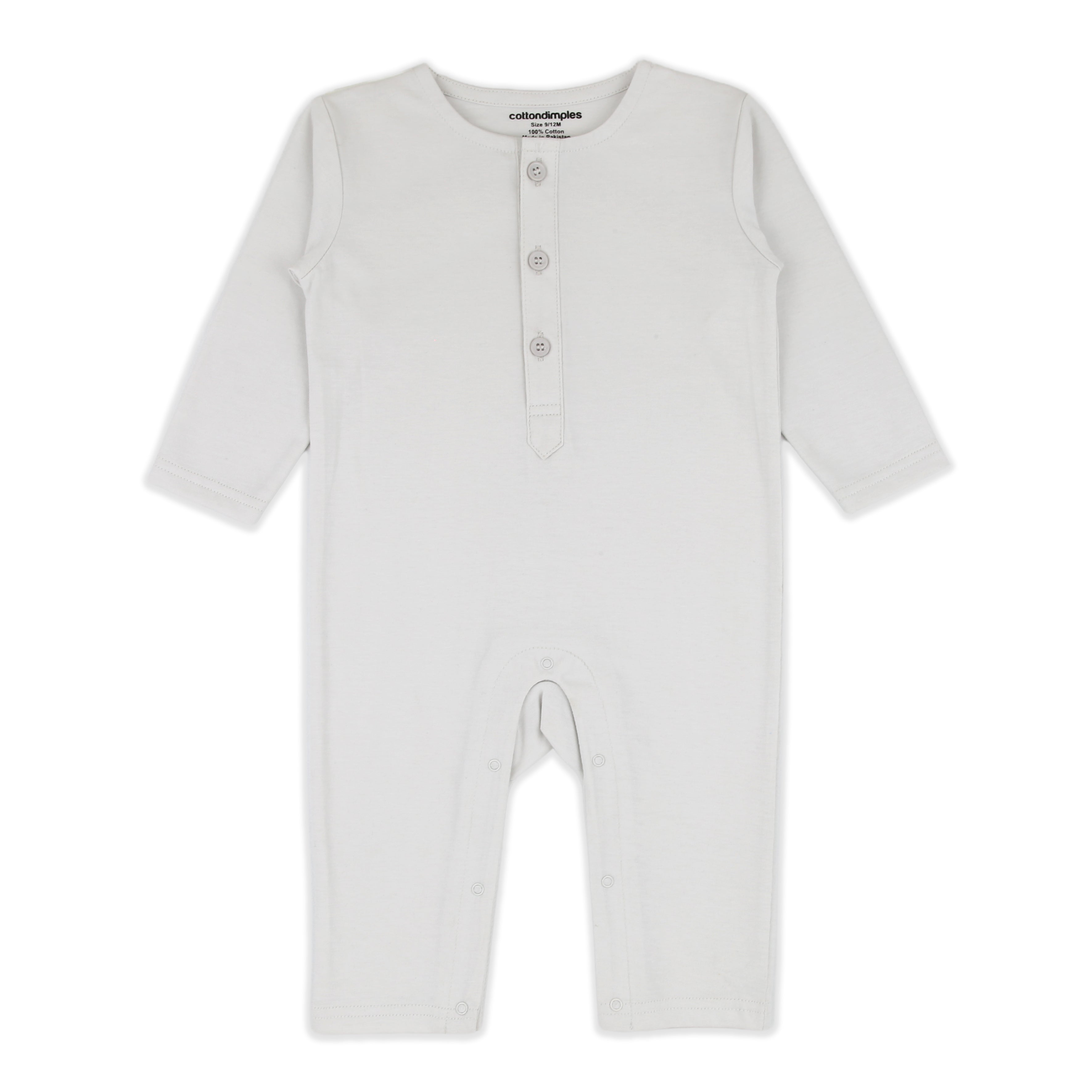 A full-sleeve ivory romper with a smart buttoned placket