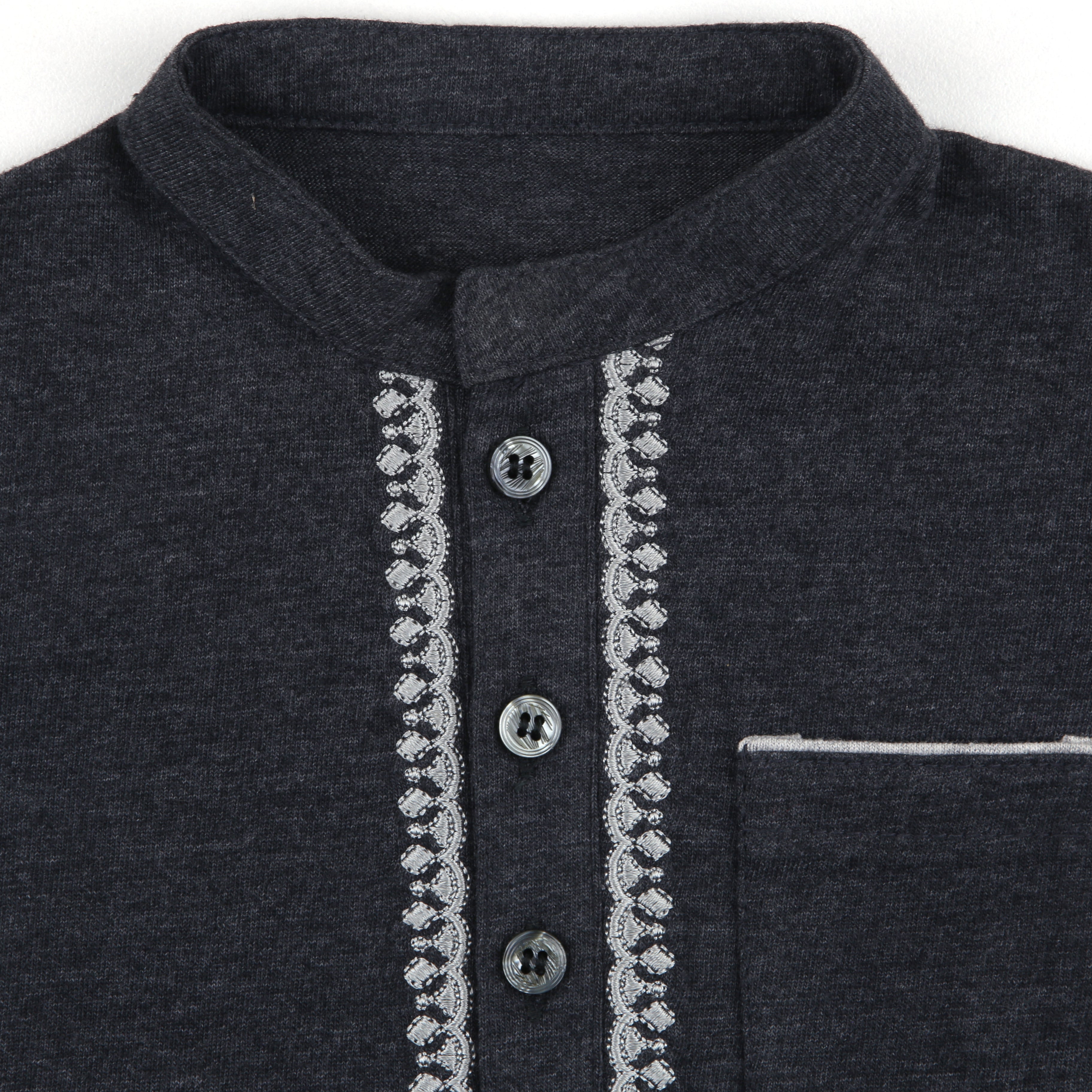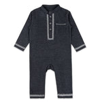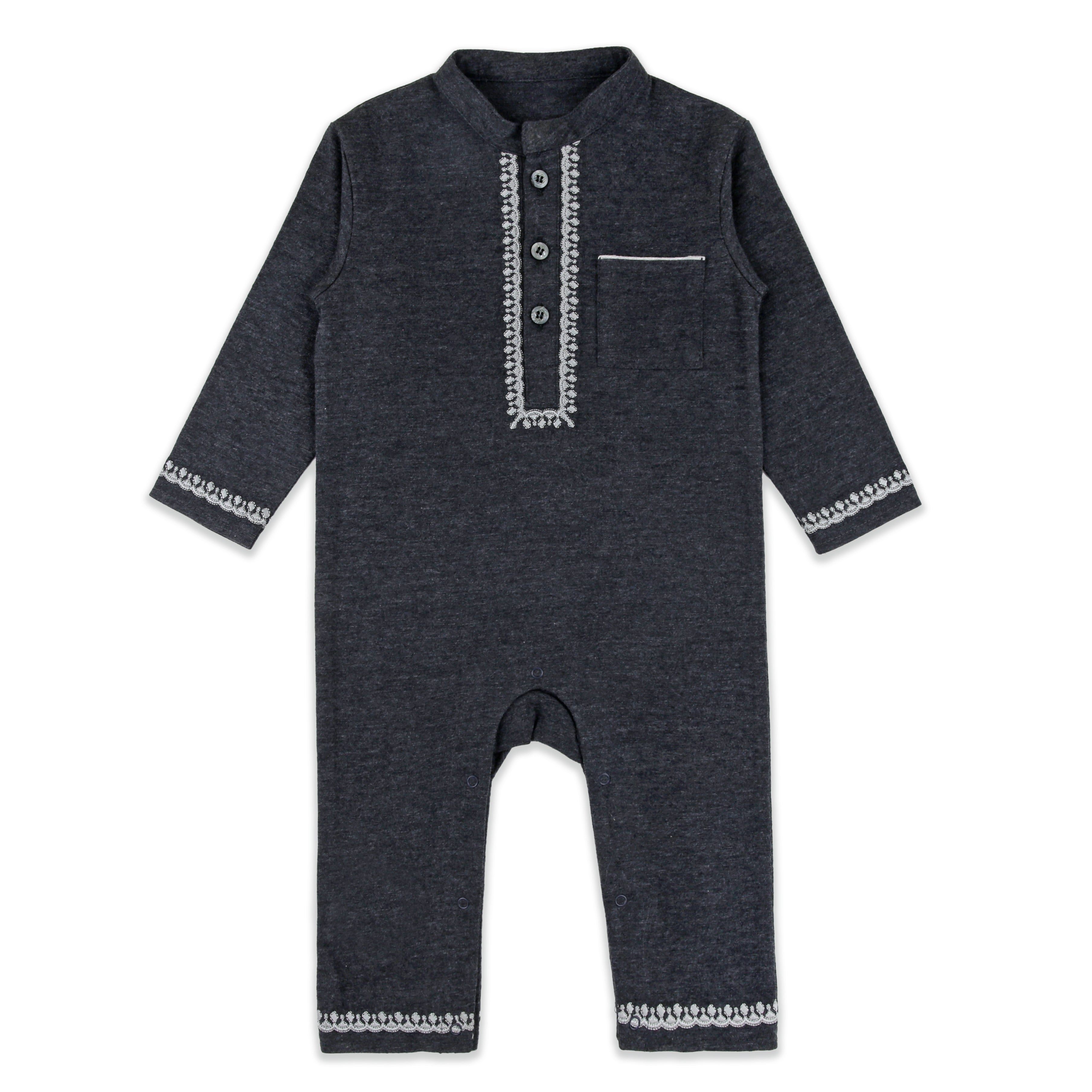 Snap buttons at the crotch ensure easy diaper changes, while the full-sleeve design makes it a wonderful day-to-night Eid outfit.