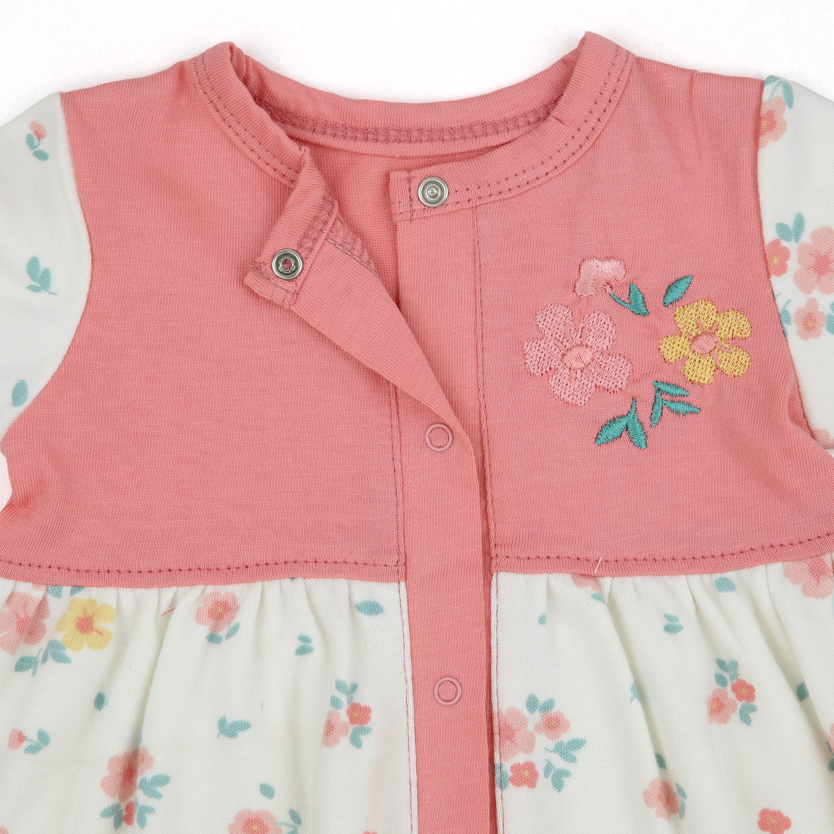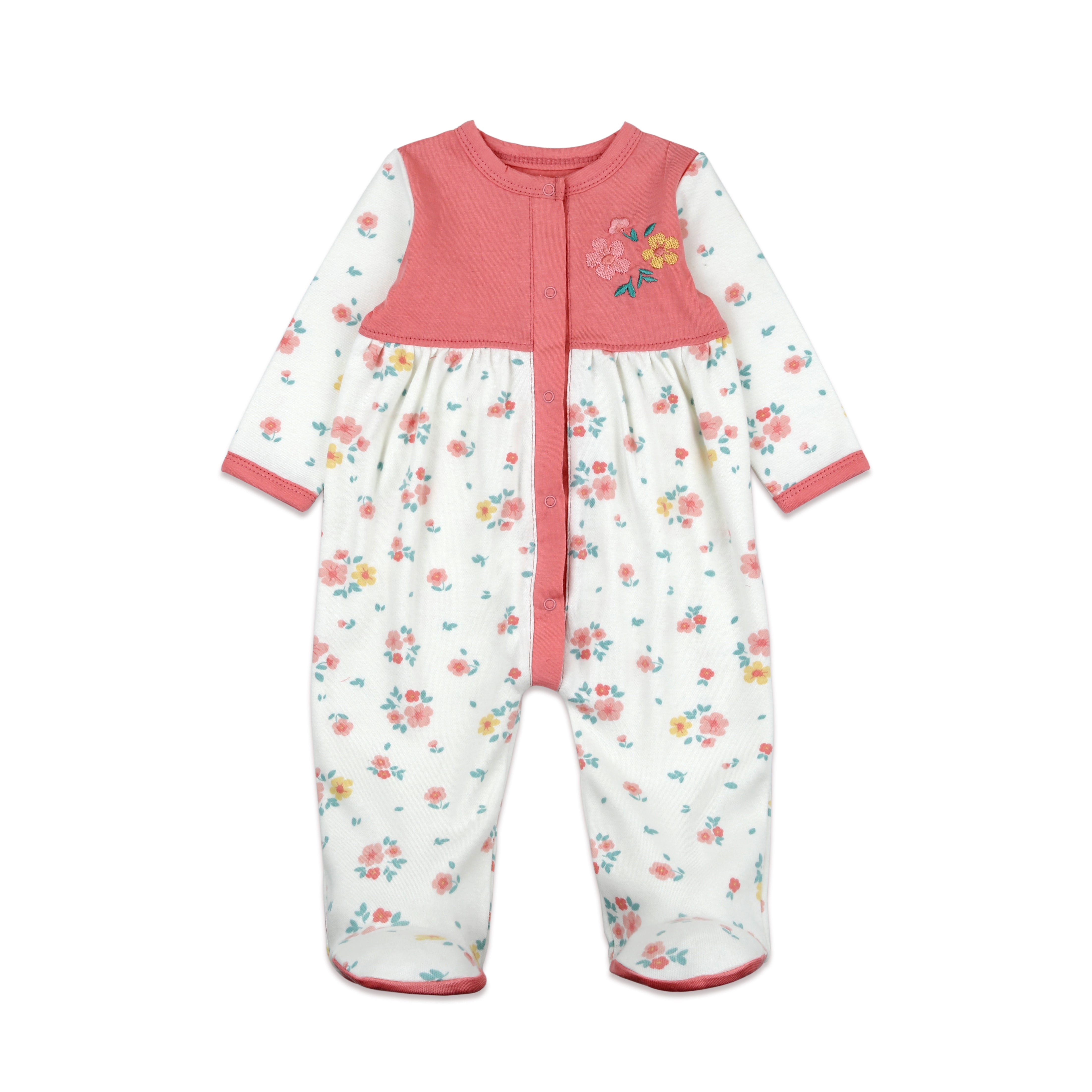- Front snaps in footie with cute embroidery on panel