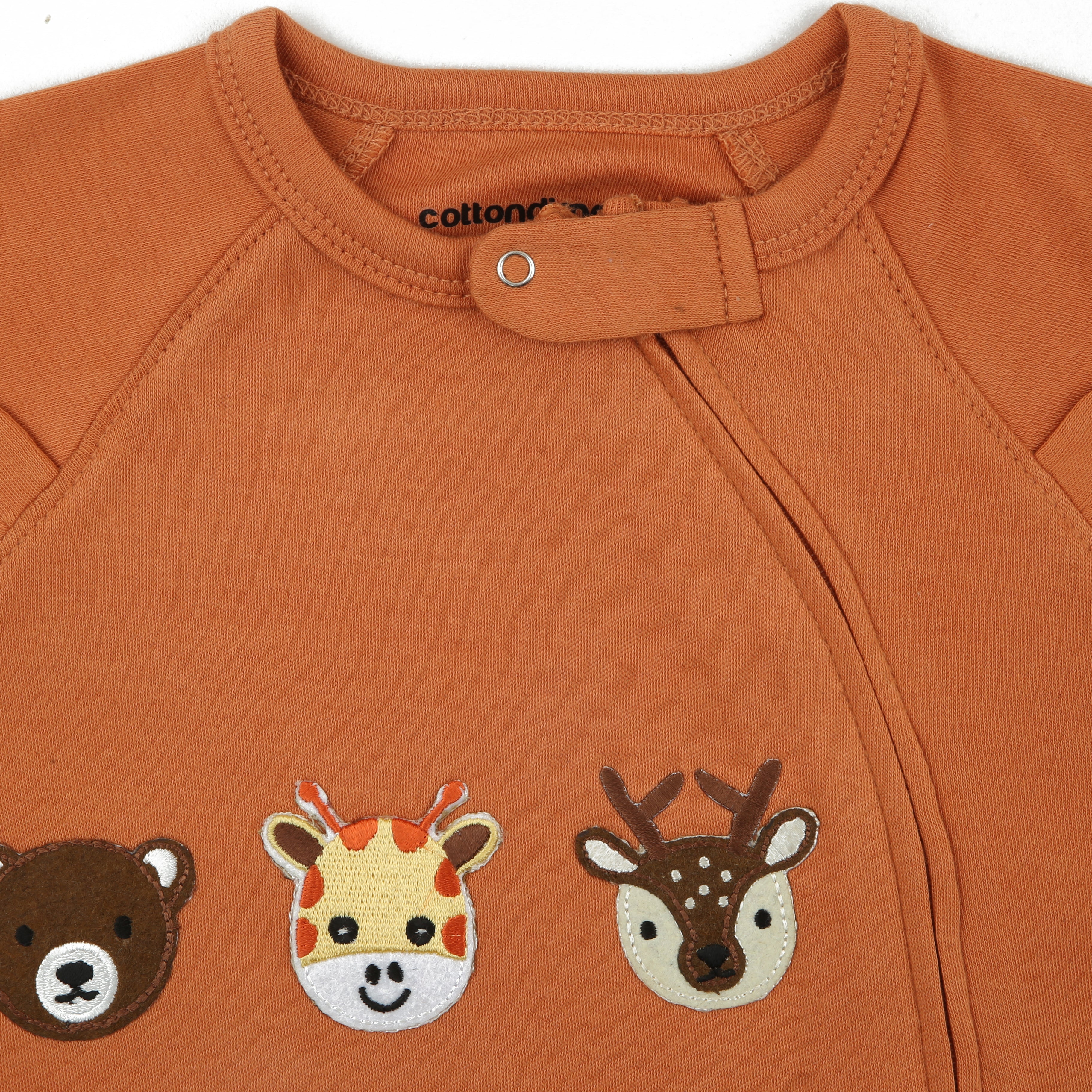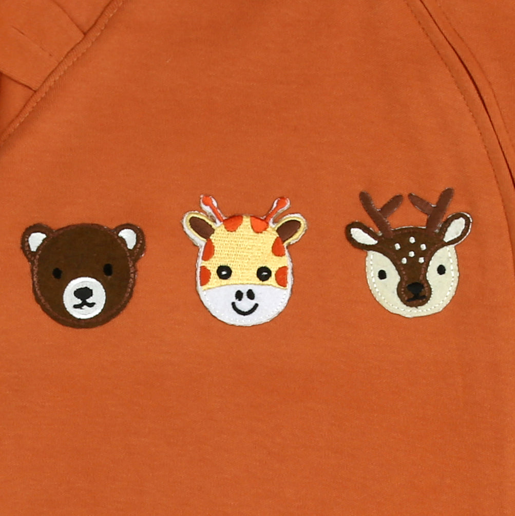 With cute embroidered animal patches, this romper adds a fun, playful touch to your baby’s wardrobe. The built-in footies can be folded down if your baby feels warm, offering versatility for changing temperatures. Whether it's for playtime or naps, this romper will keep your baby comfortable all day long.