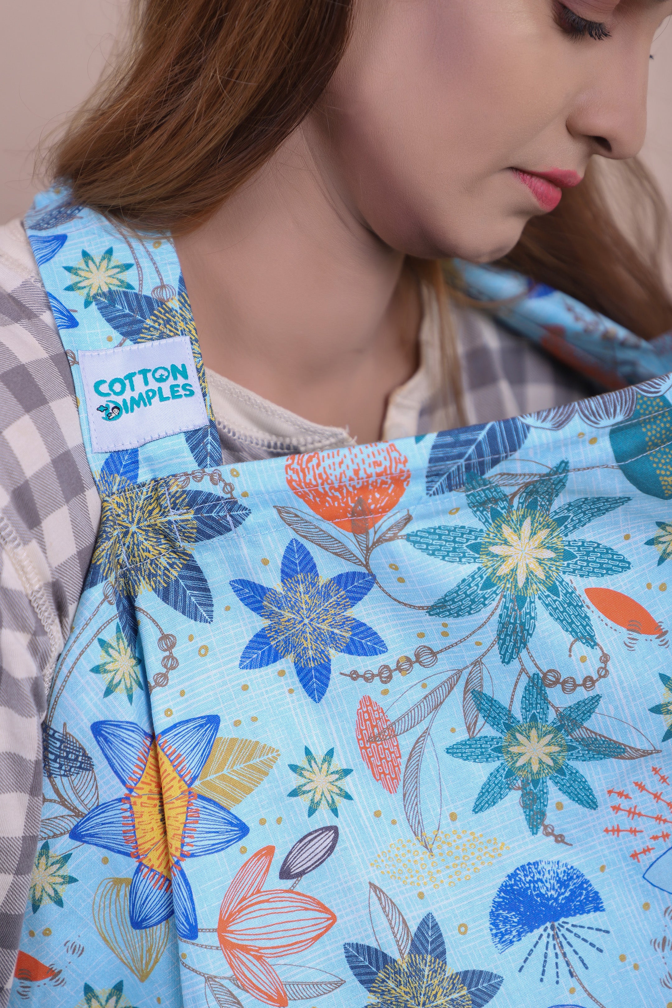Cotton Dimples Mum & Me range of mummy products brings you its premium multi-functional nursing cover/apron that would make nursing in public convenient and stylish with complete privacy. Moreover, the baby would be less distracted while breastfeeding and would be protected from the sun and wind if you choose to nurse outside.
