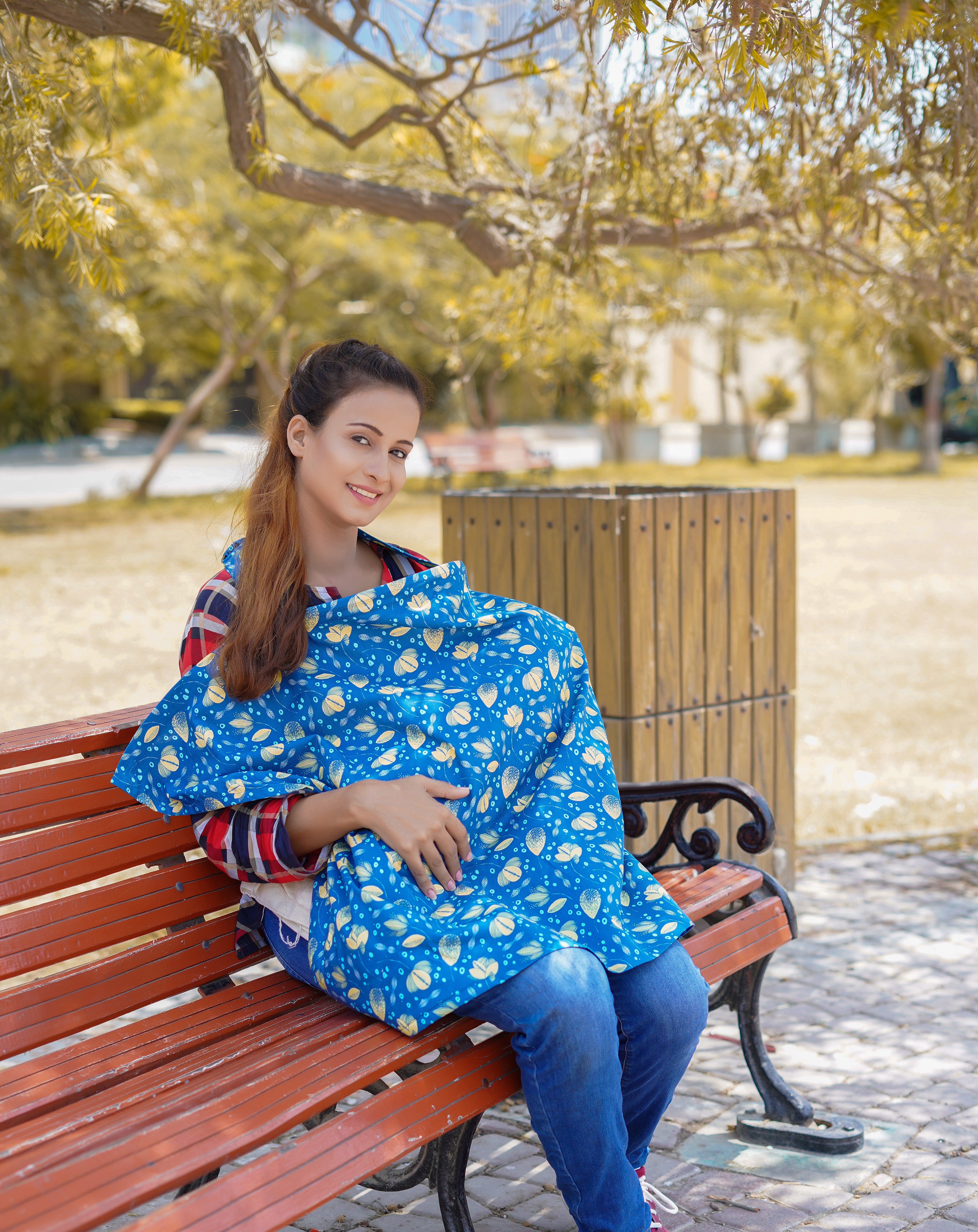 Cotton Dimples Mum & Me range of mummy products brings you its premium multi-functional nursing cover/apron that would make nursing in public convenient and stylish with complete privacy. Moreover, the baby would be less distracted while breastfeeding and would be protected from the sun and wind if you choose to nurse outside.